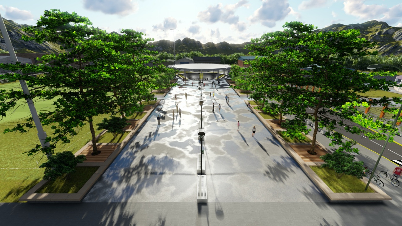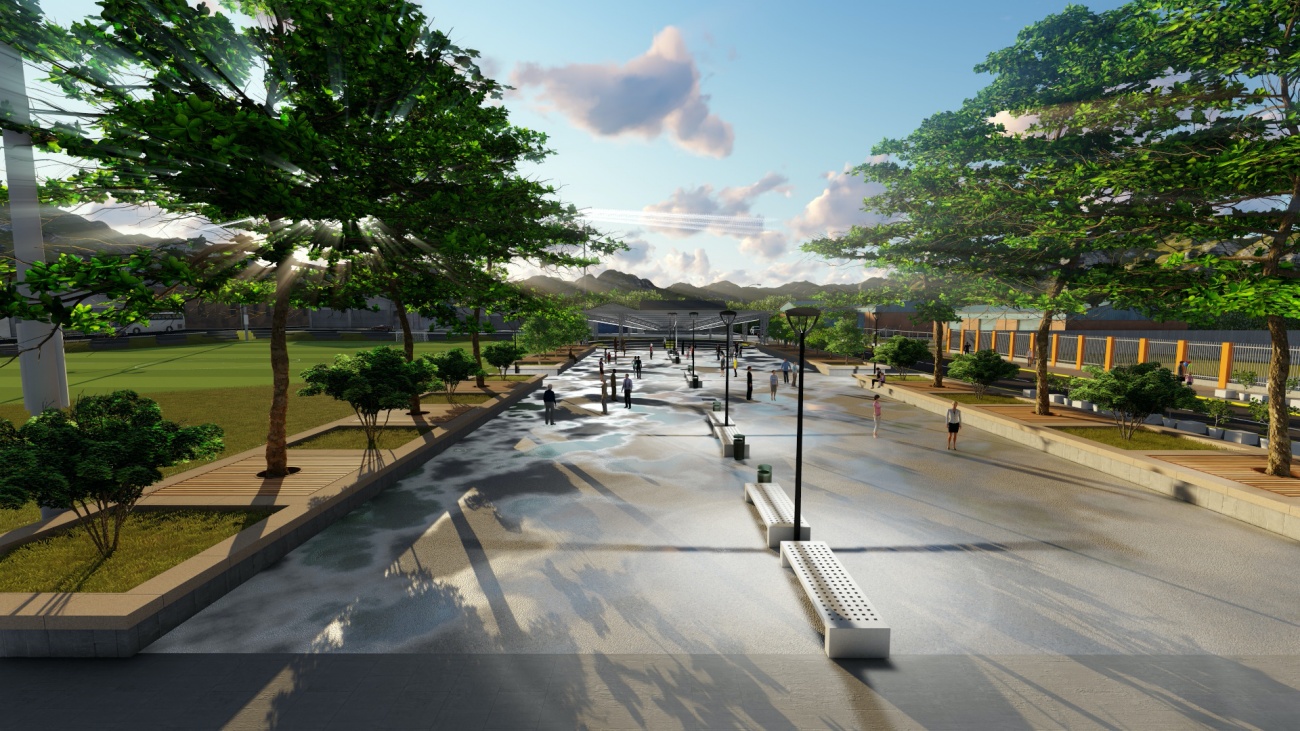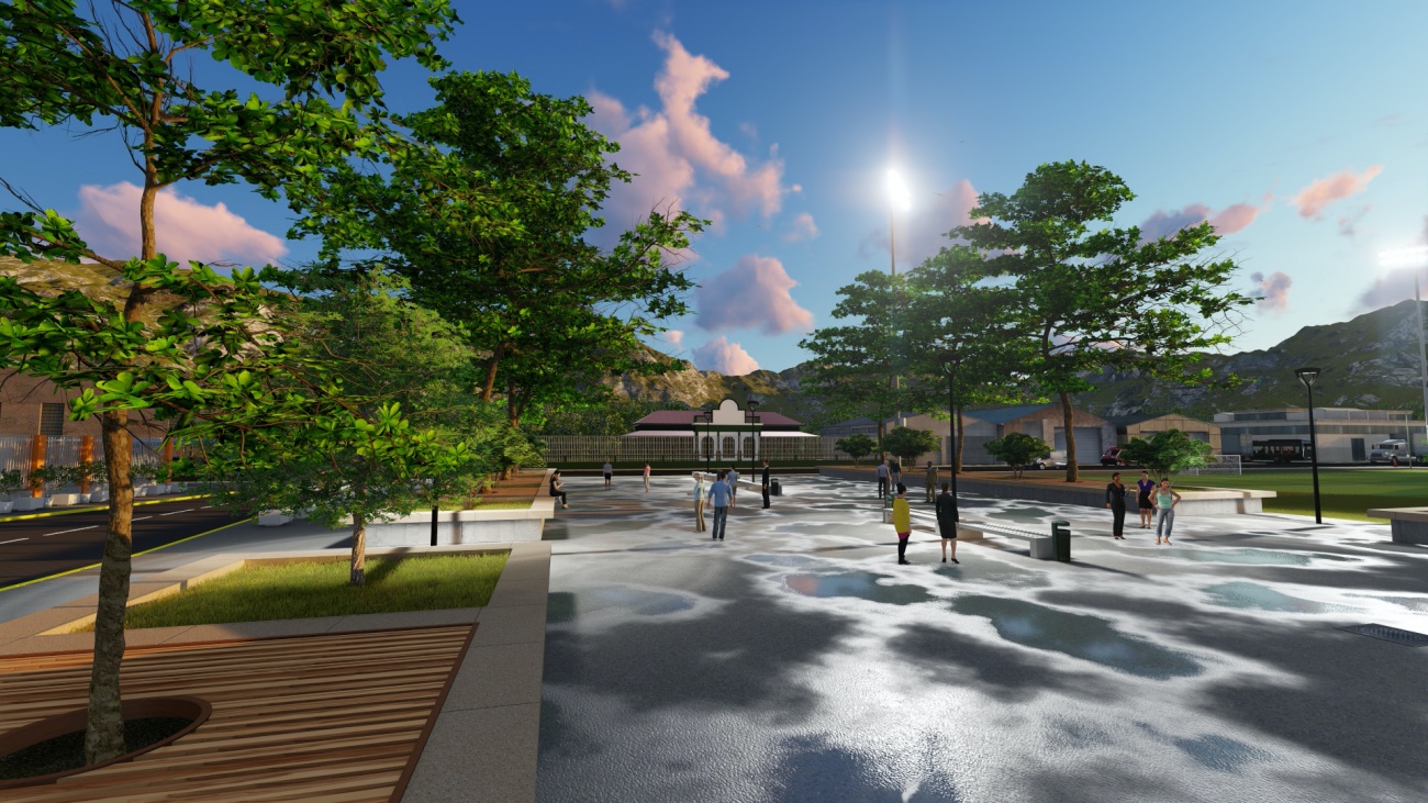 Remodelación del parque central de Siquirres, reducción de la cancha, junto con ampliación de plaza de actividades pública, ahora para 100 personas y área de juegos infantiles.