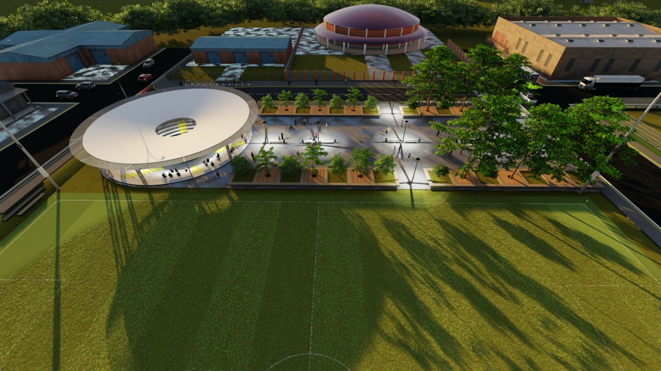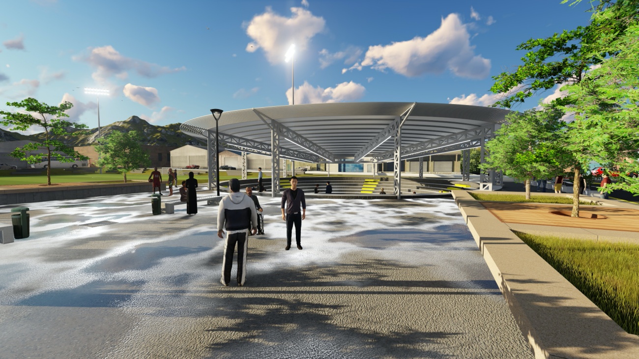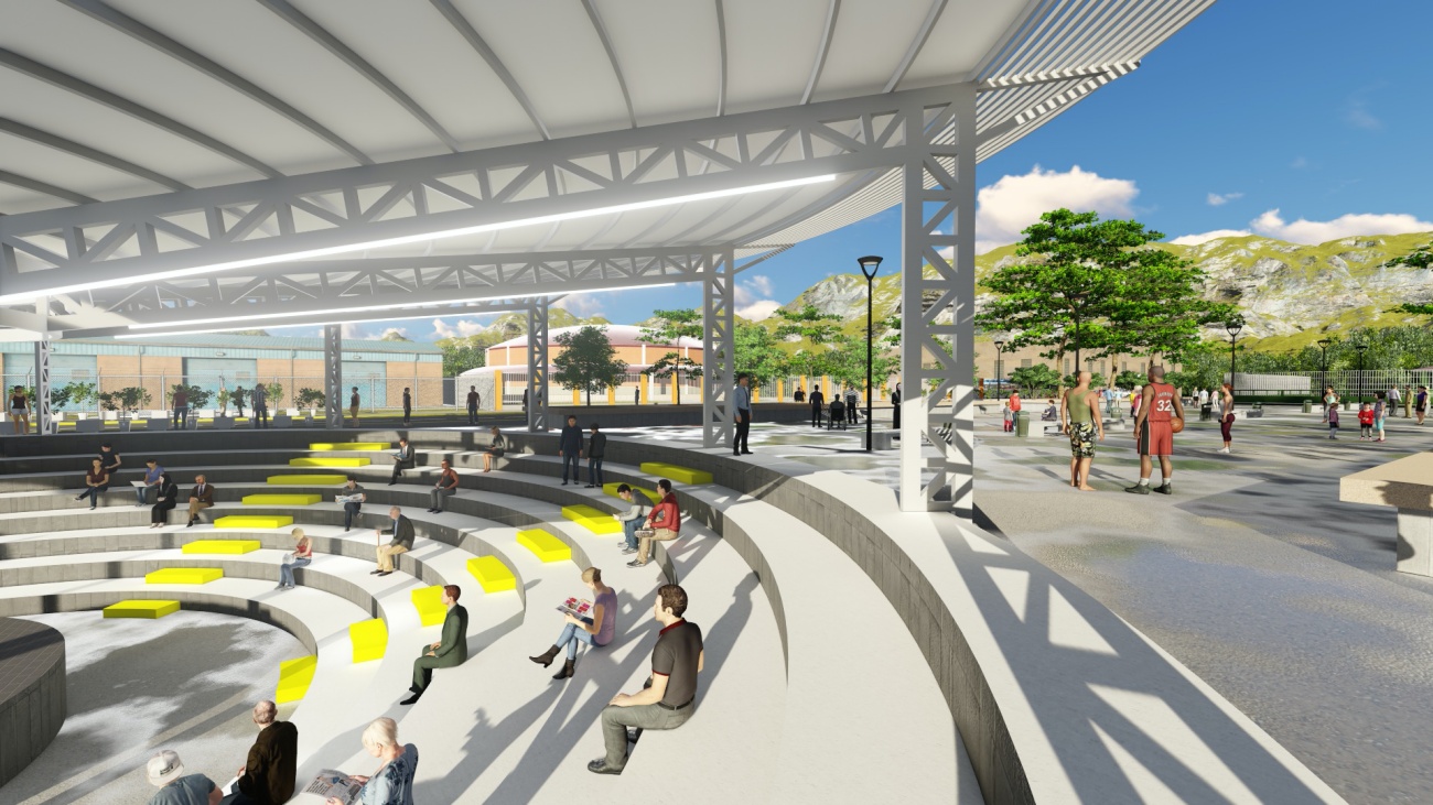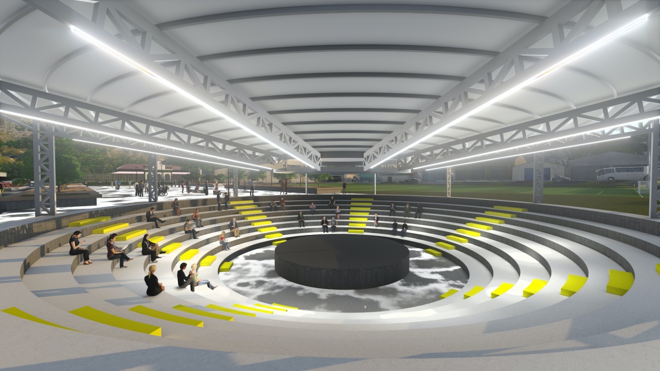 Remodelación del parque central de Siquirres, reducción de la cancha, junto con ampliación de plaza de actividades pública, ahora para 100 personas y área de juegos infantiles.