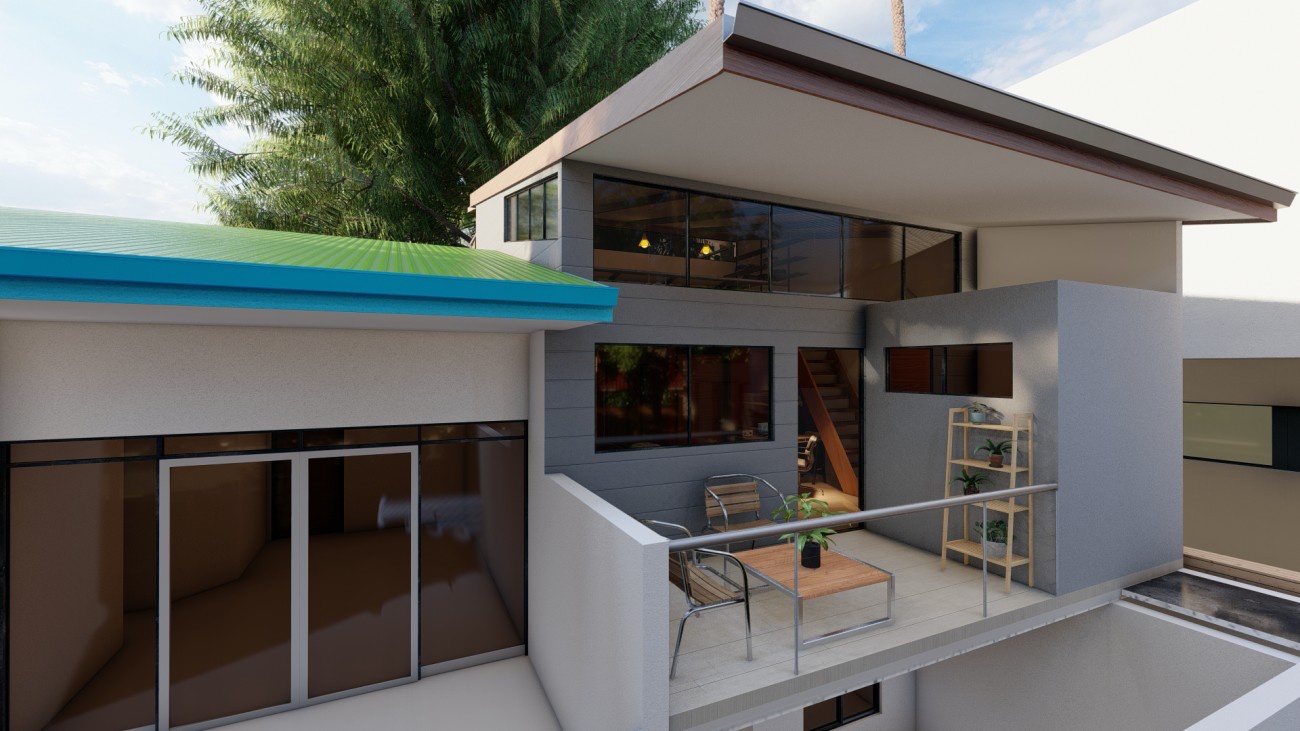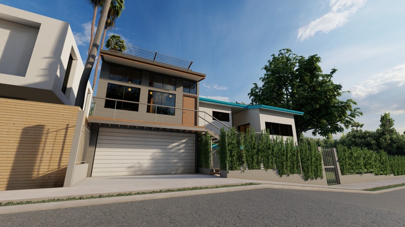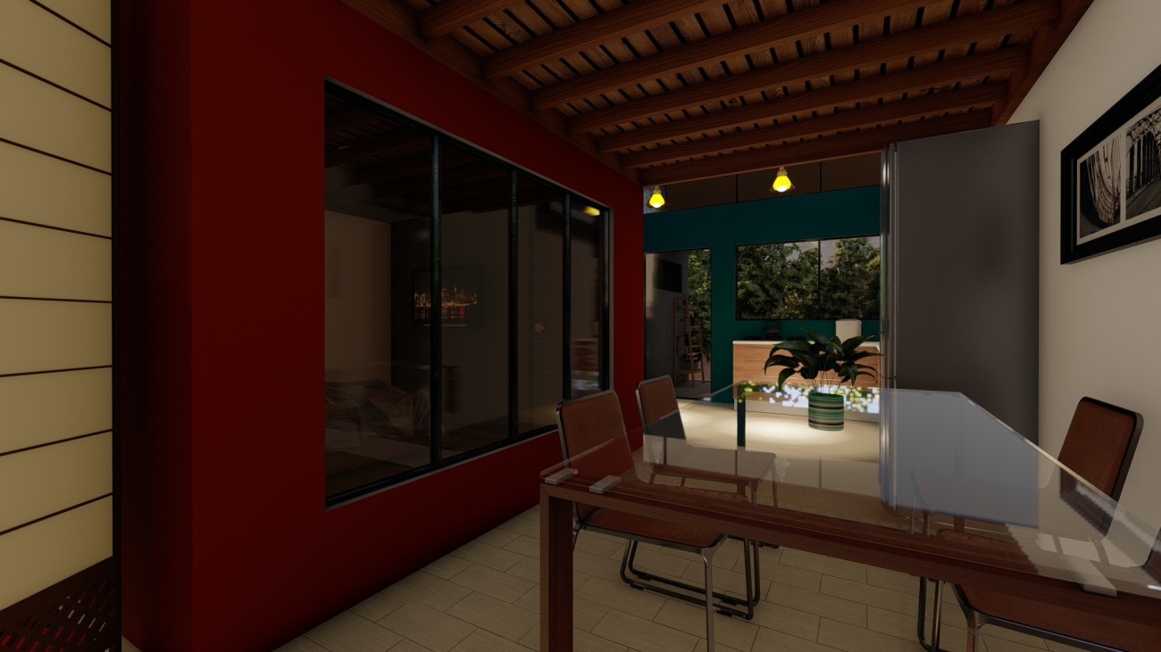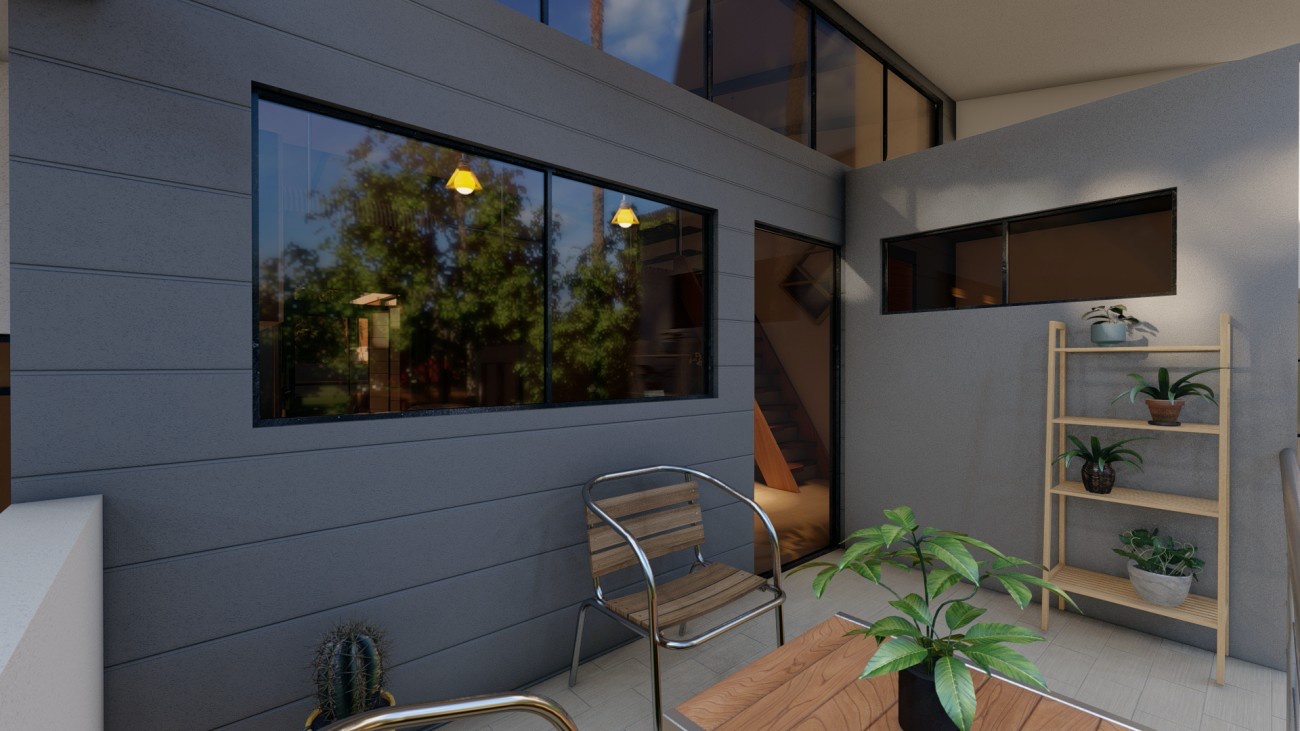 Apartamento con dos dormitorios, sala, cocina, estudio, terraza y baño completo.