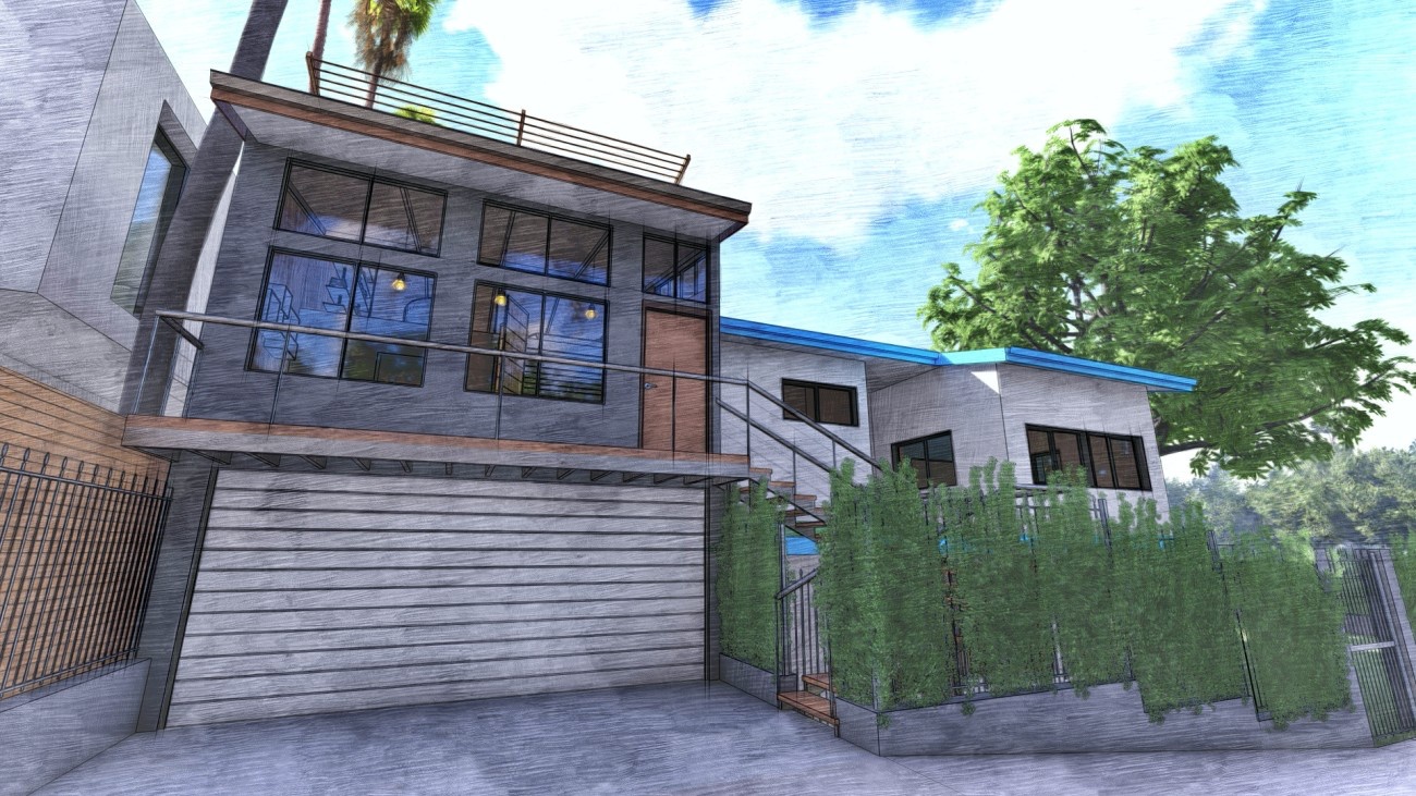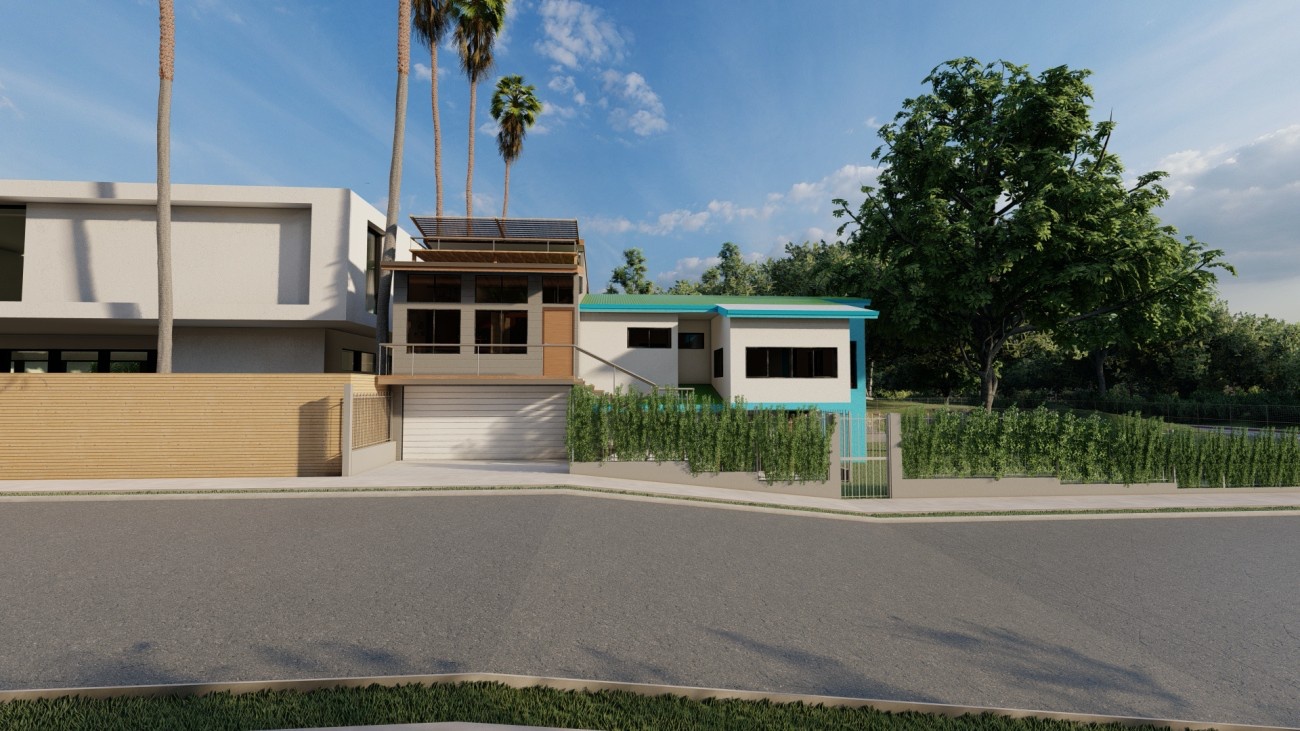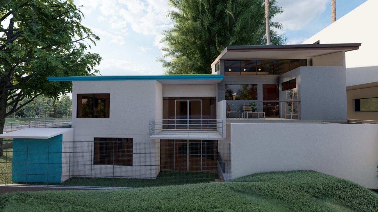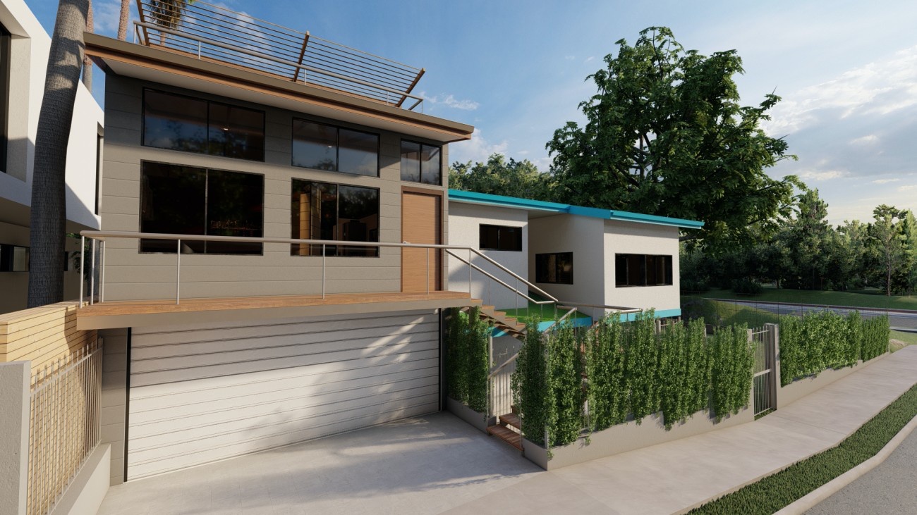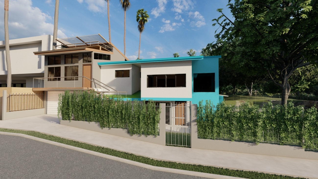 Apartamento con dos dormitorios, sala, cocina, estudio, terraza y baño completo.