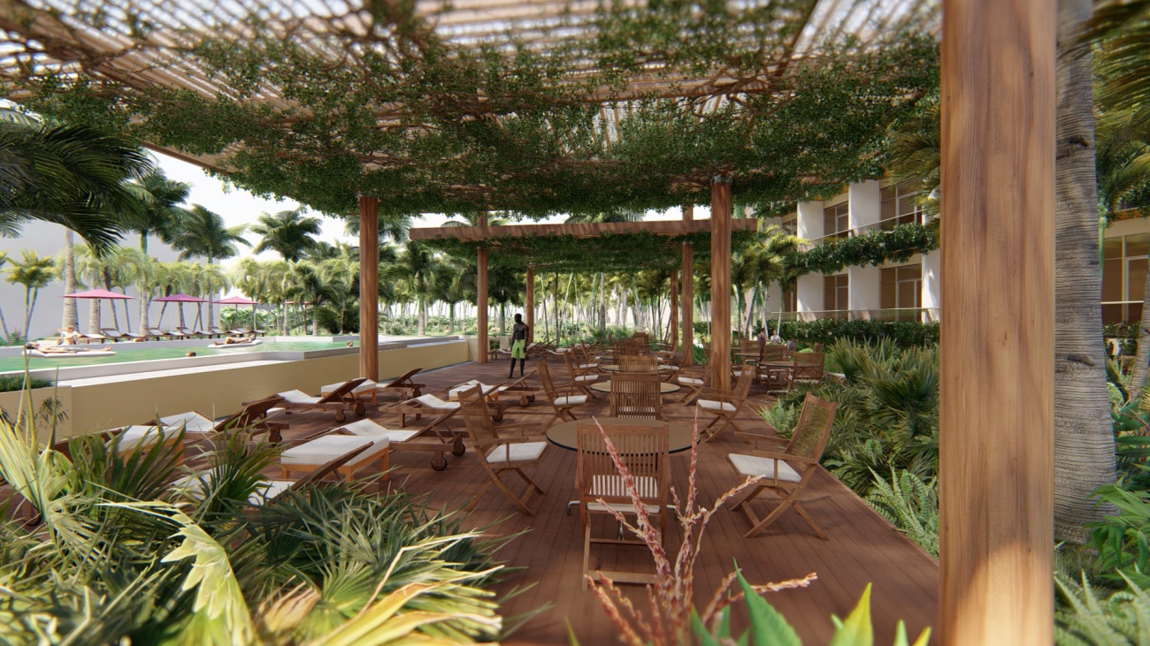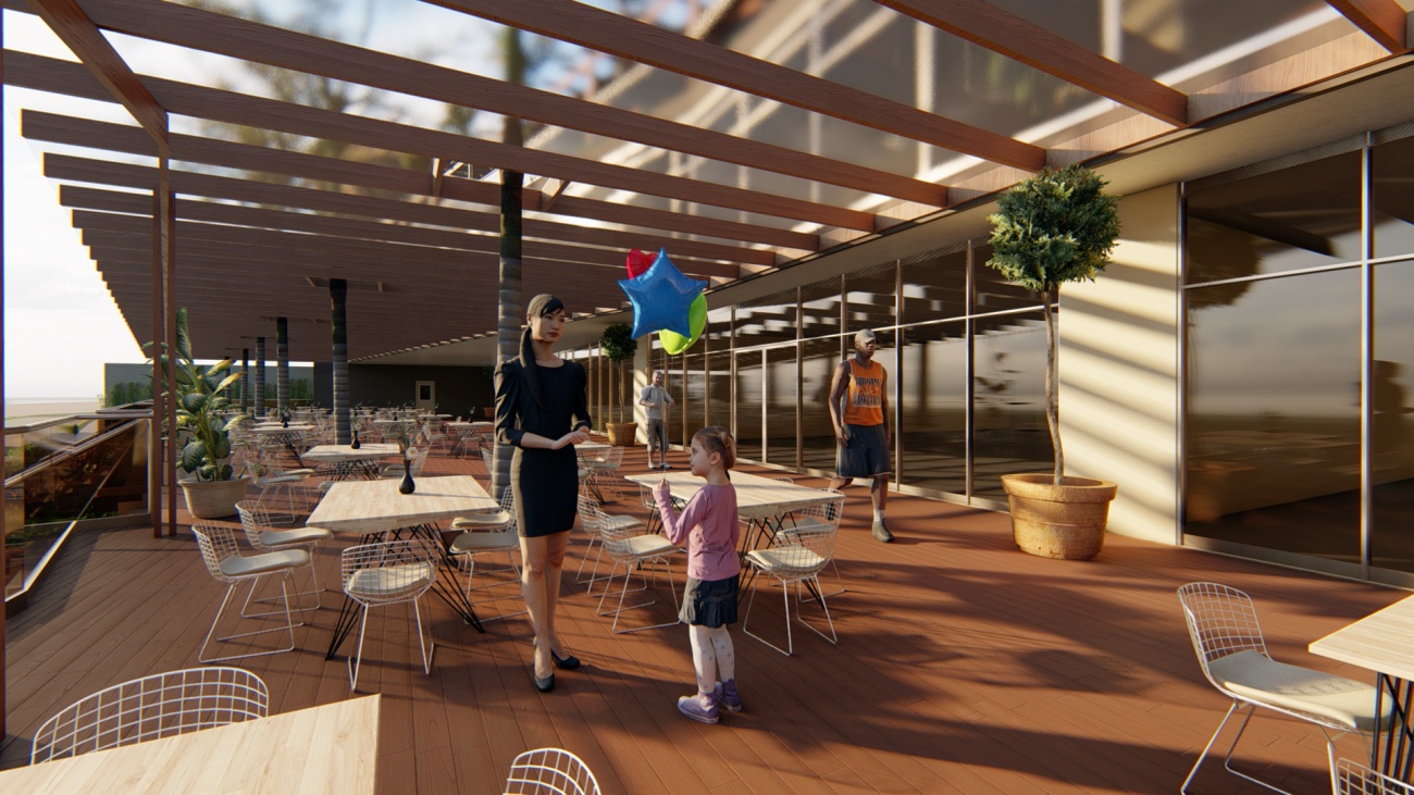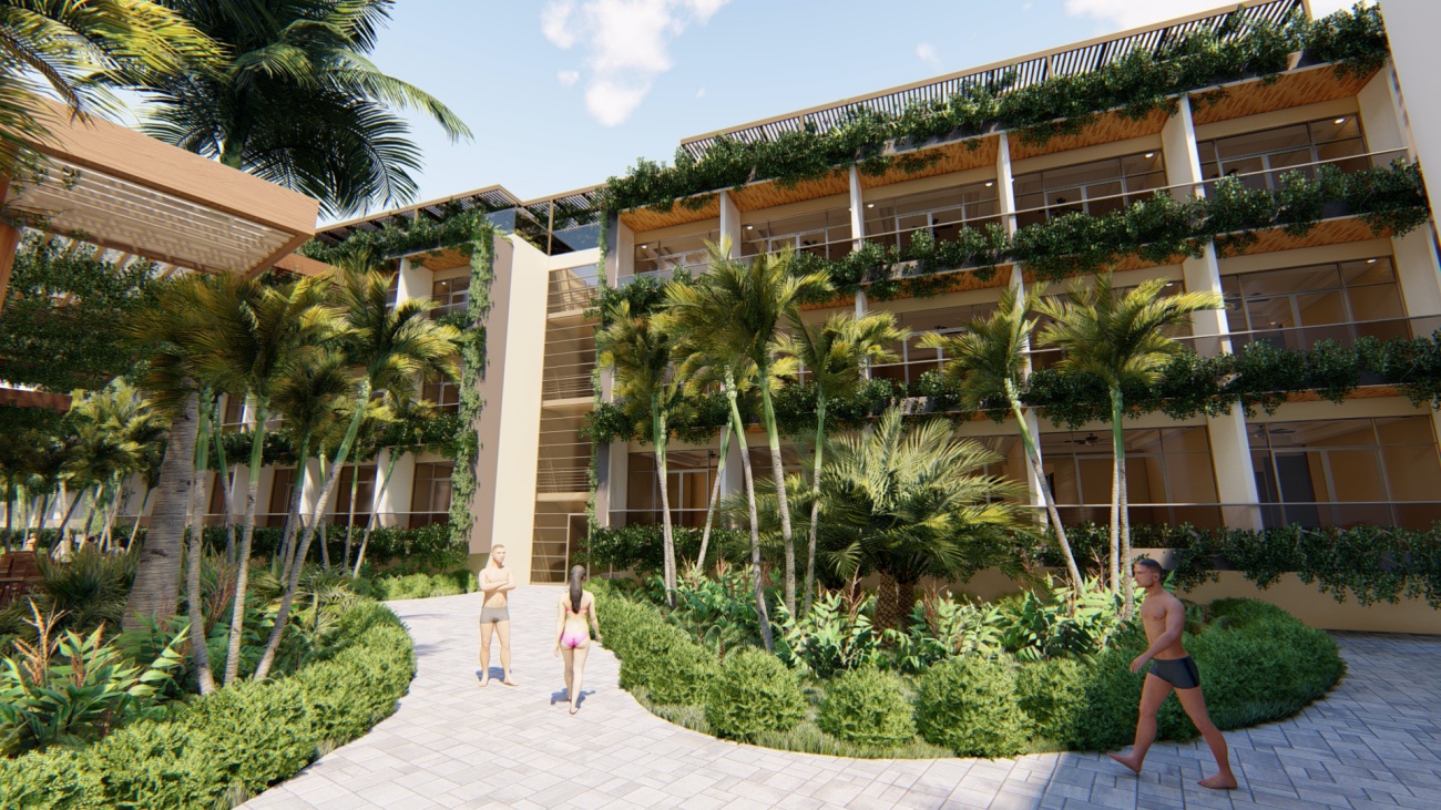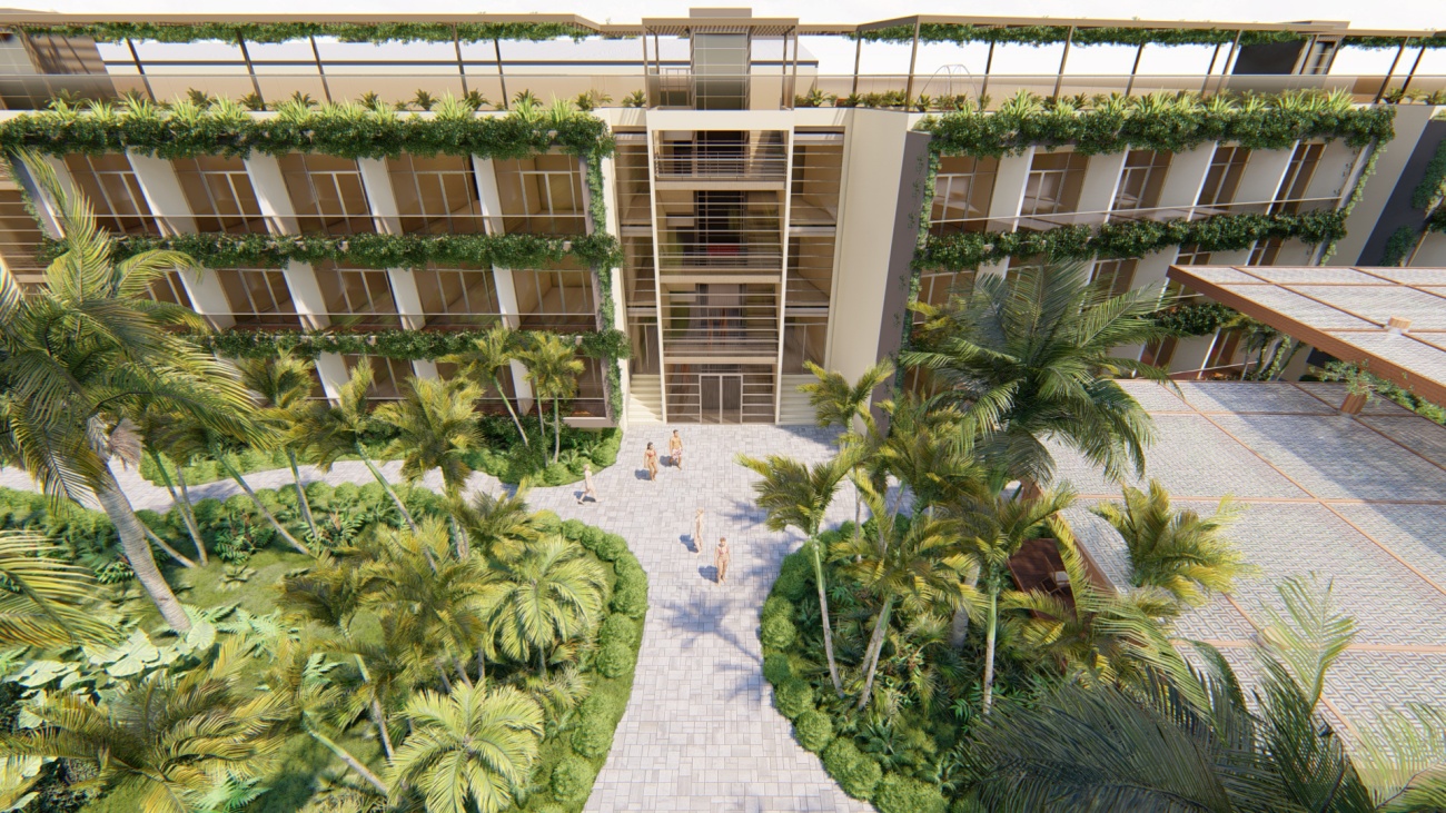 Edificio de 80 habitaciones, con restaurantes, gimnasio, cocina y disco bar.