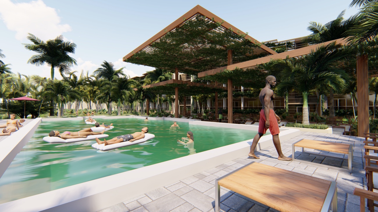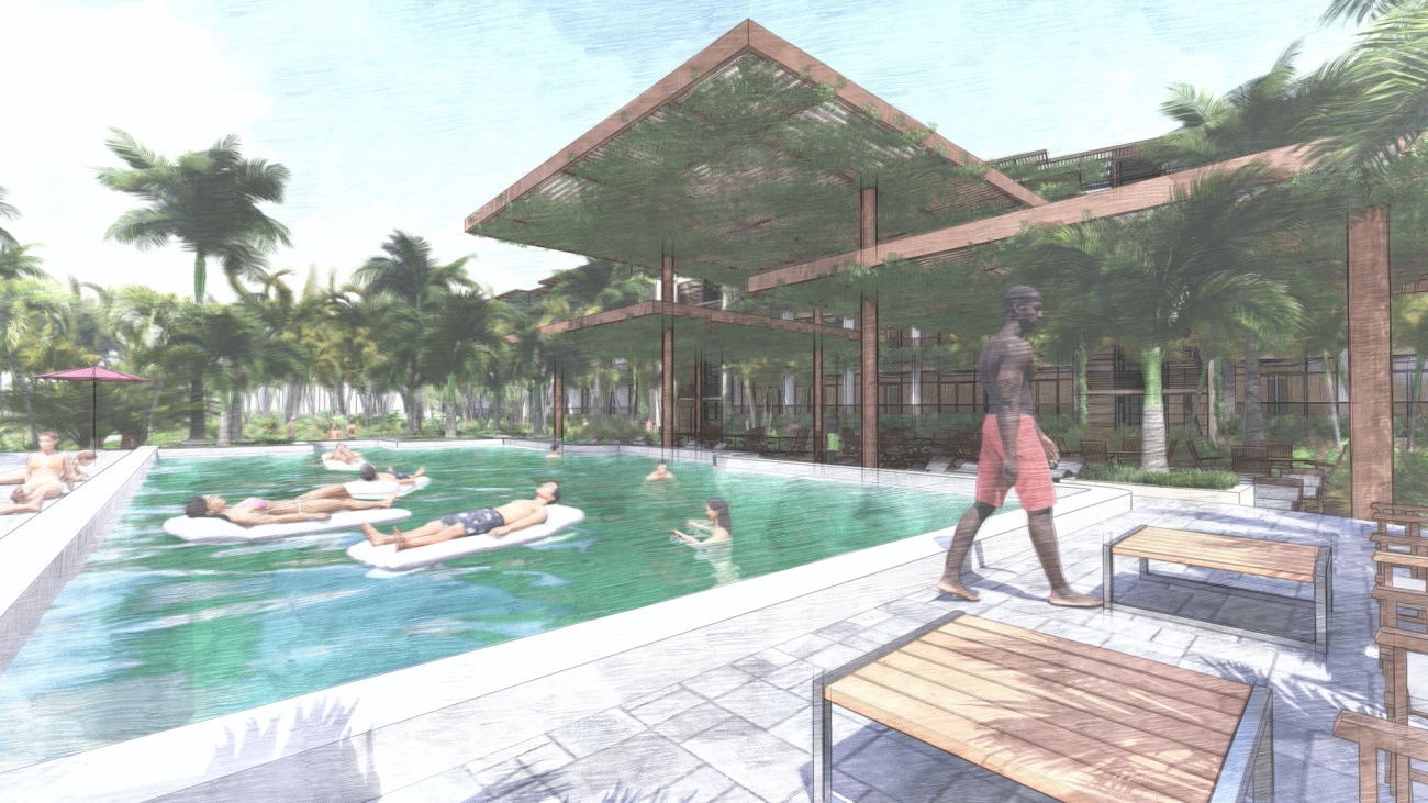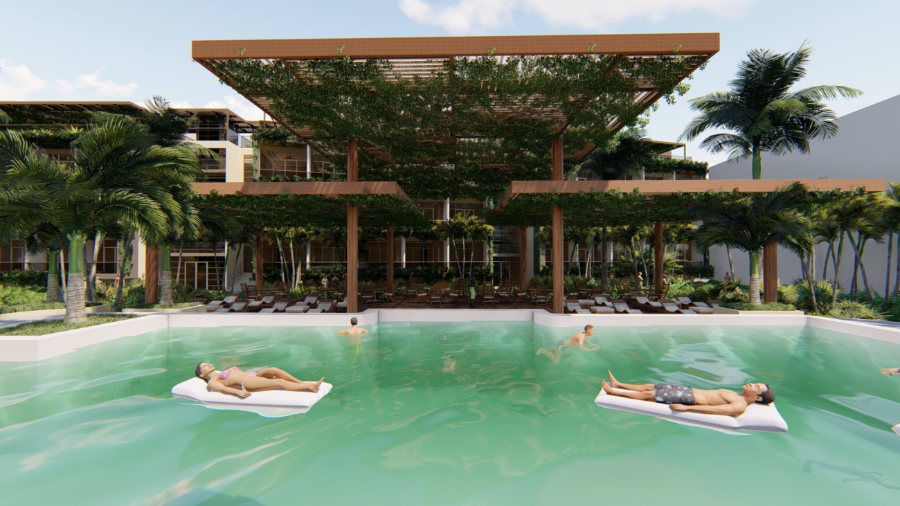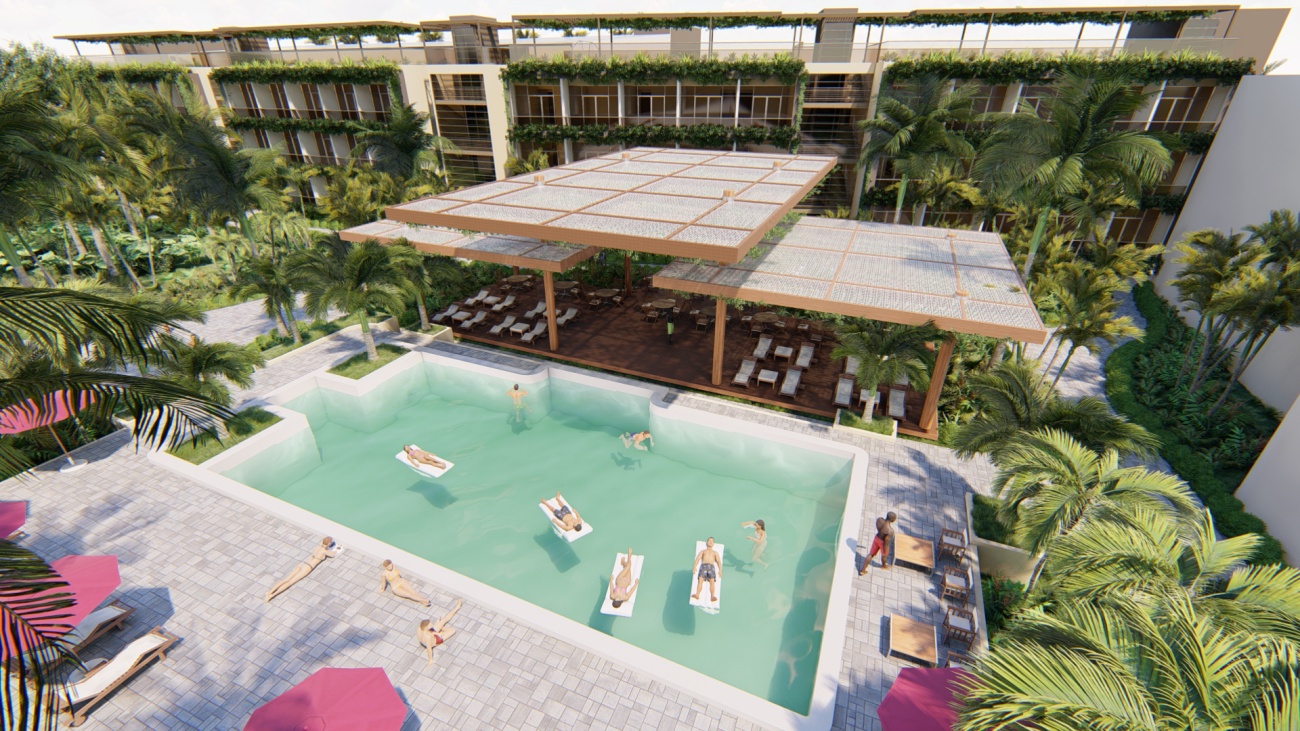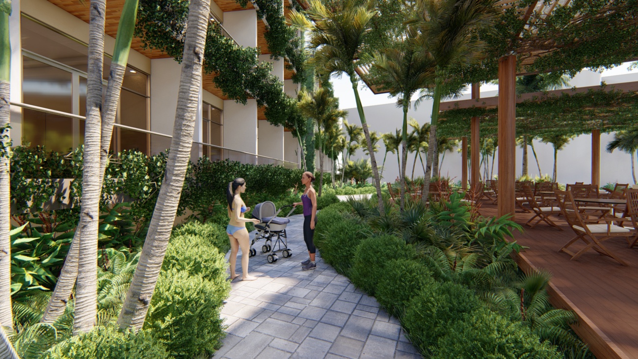 Edificio de 80 habitaciones, con restaurantes, gimnasio, cocina y disco bar.
