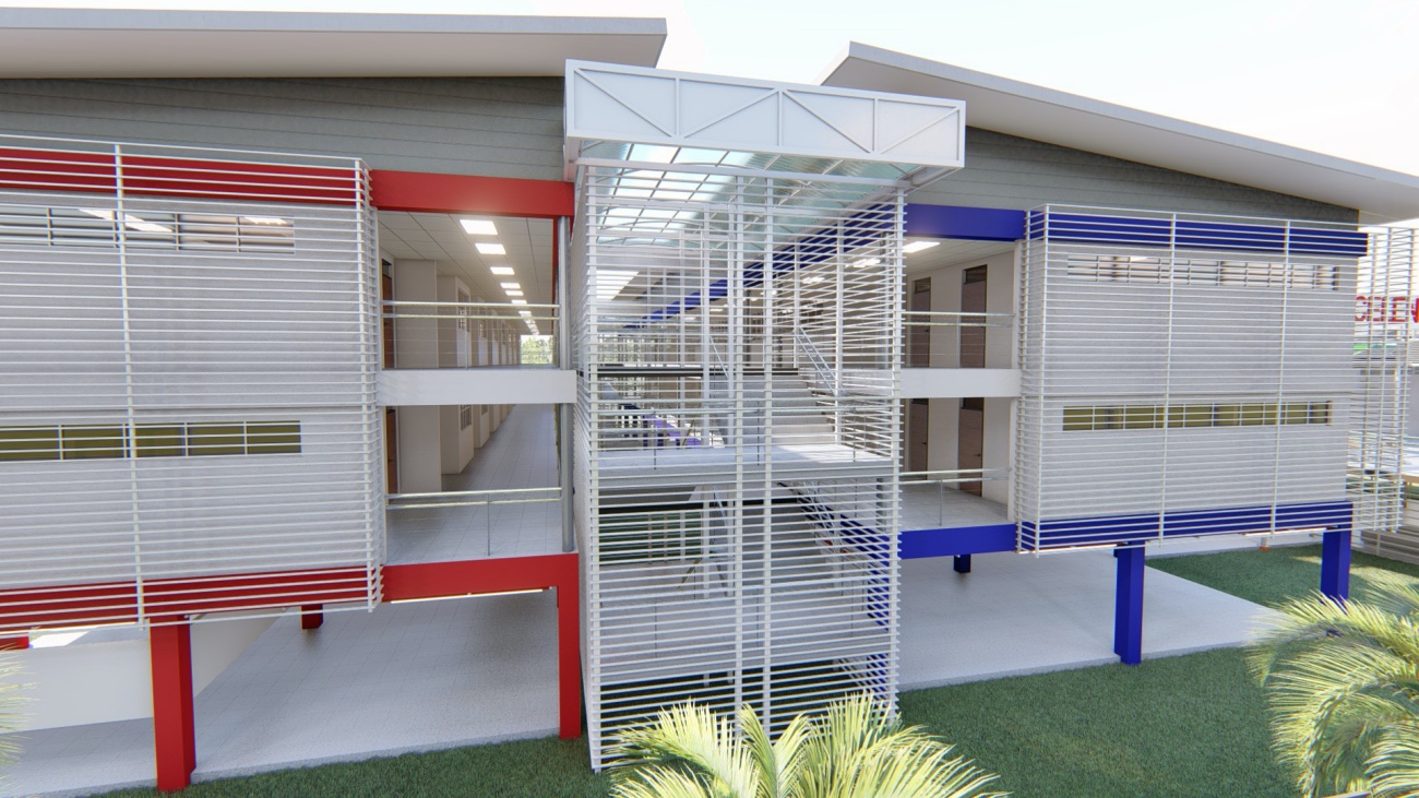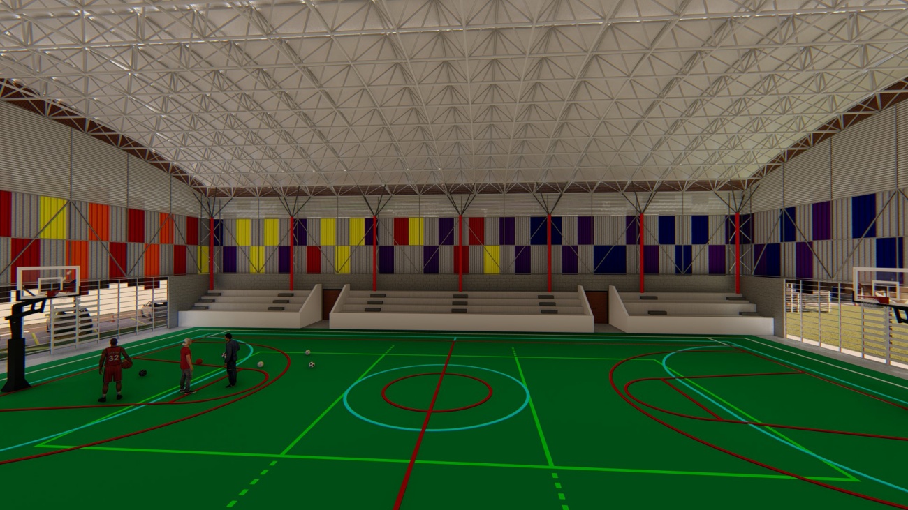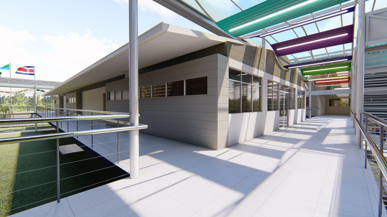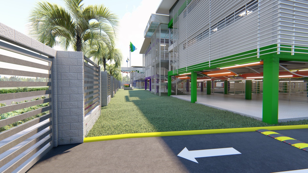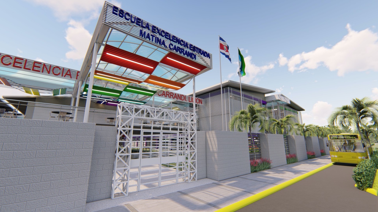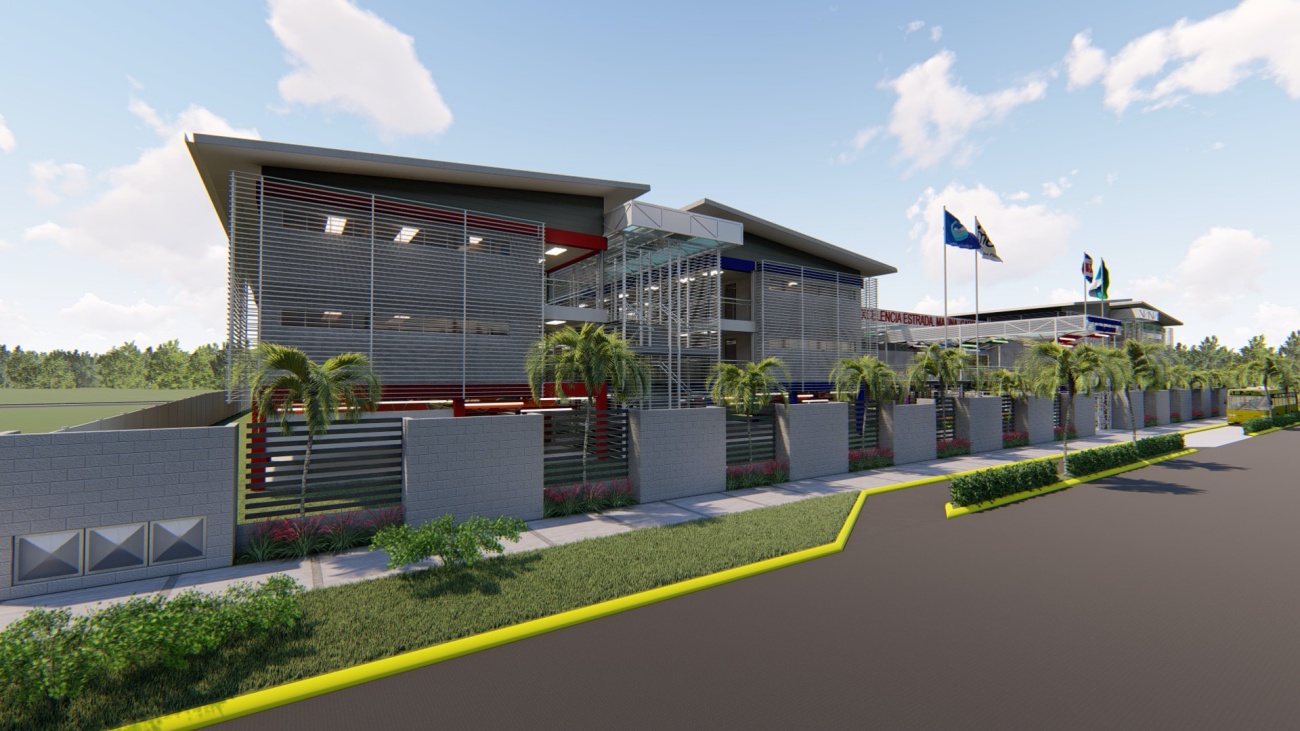 Construcción escuela nueva de 48 aulas de 72m2, con comedor para 120 estudiantes, gimnasio de 1200 m2 y cancha de fútbol con medidas reglamentarias, con parqueos para 12 vehículos y 2 autobuses.