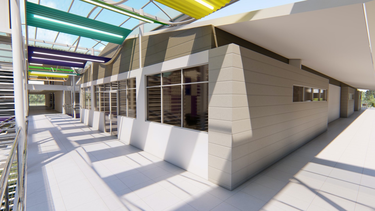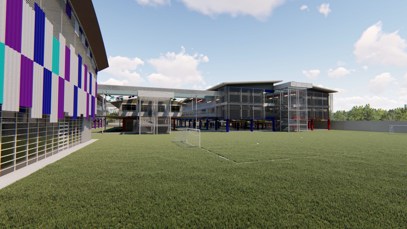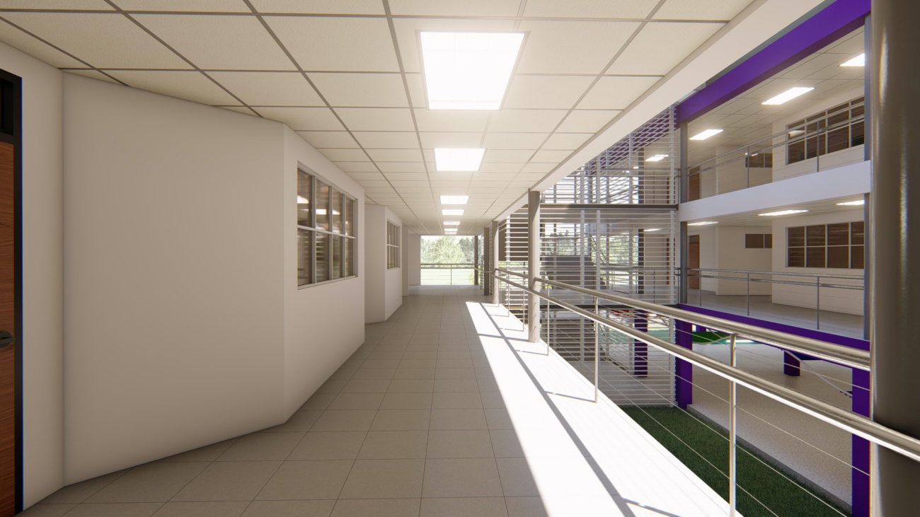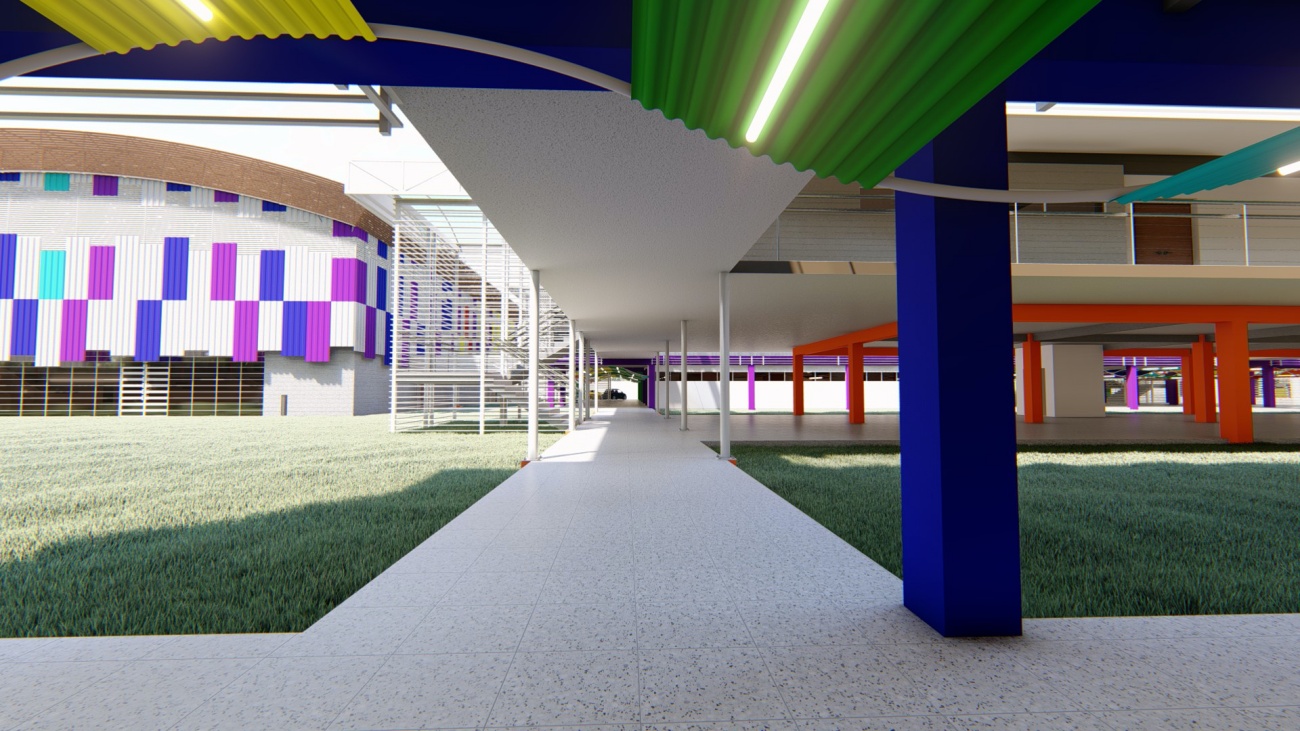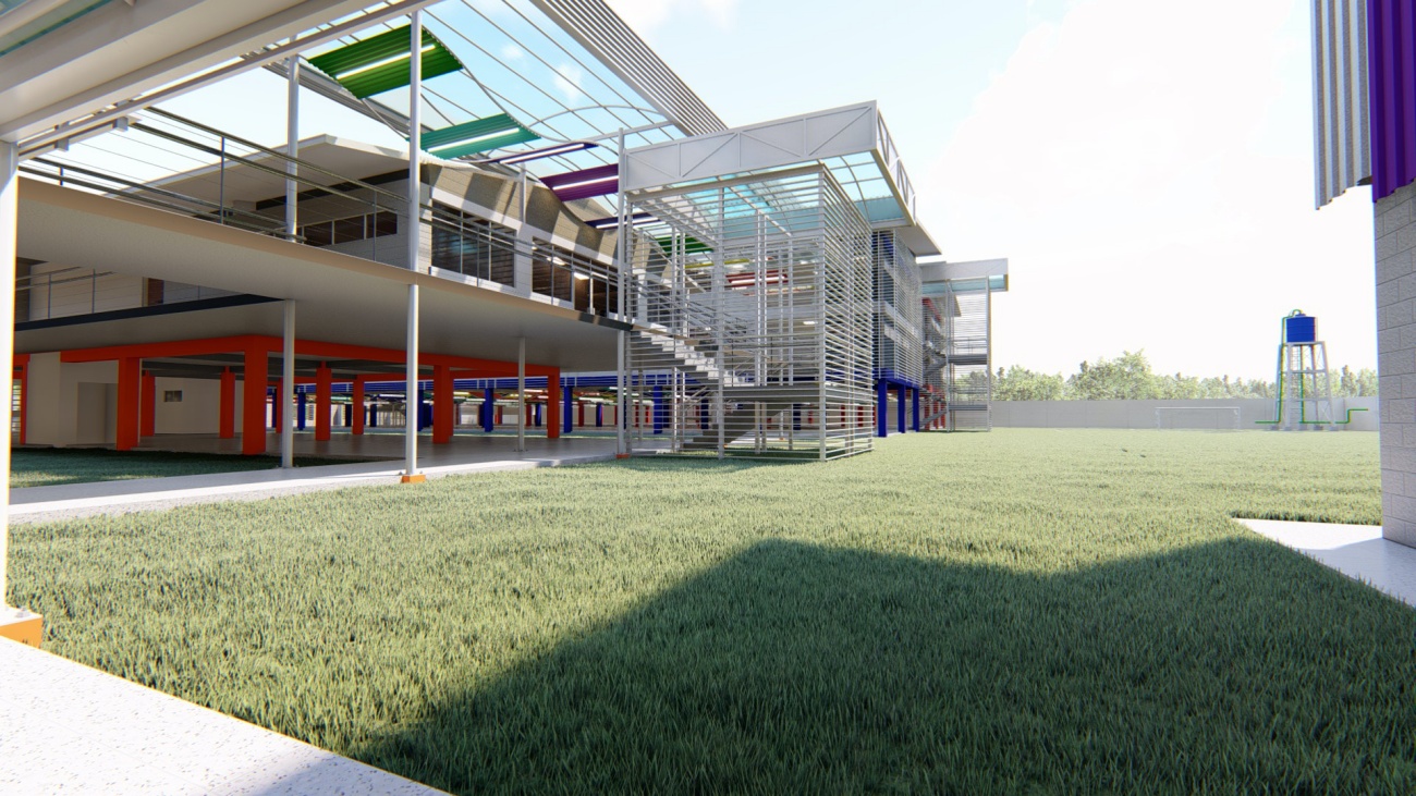 Construcción escuela nueva de 48 aulas de 72m2, con comedor para 120 estudiantes, gimnasio de 1200 m2 y cancha de fútbol con medidas reglamentarias, con parqueos para 12 vehículos y 2 autobuses.