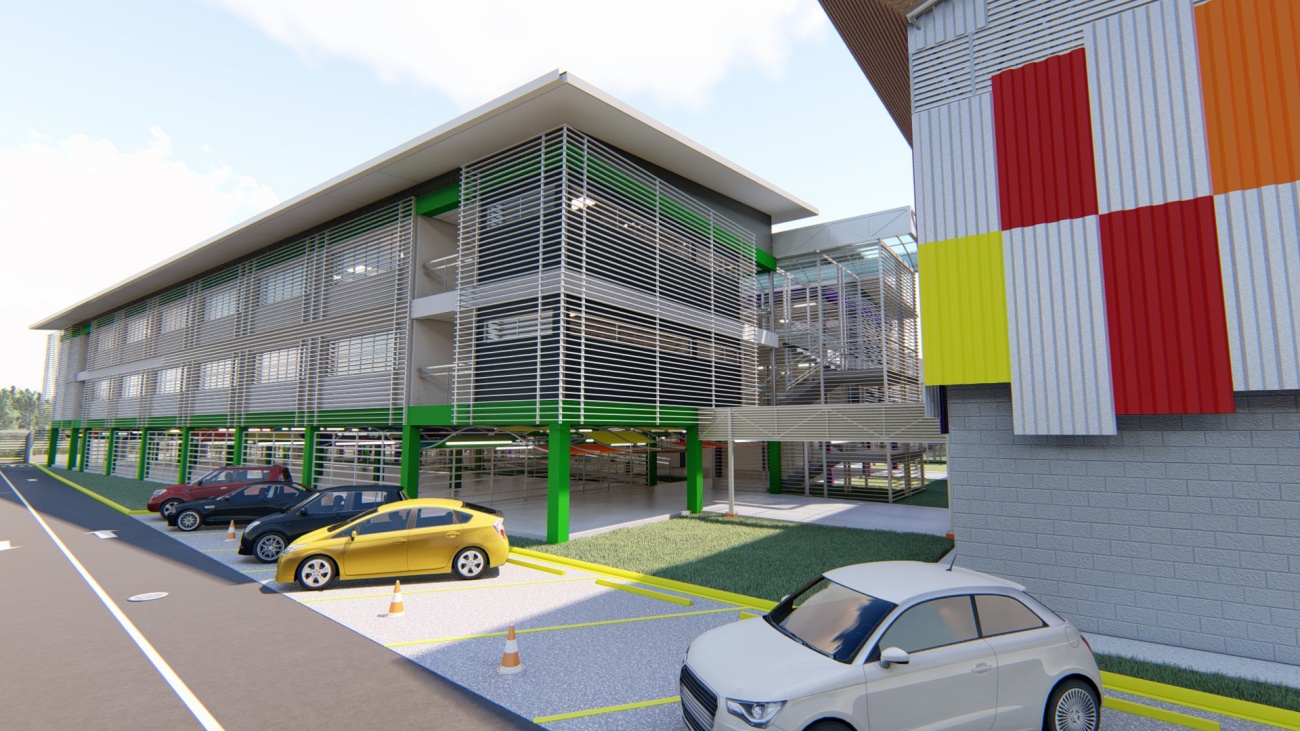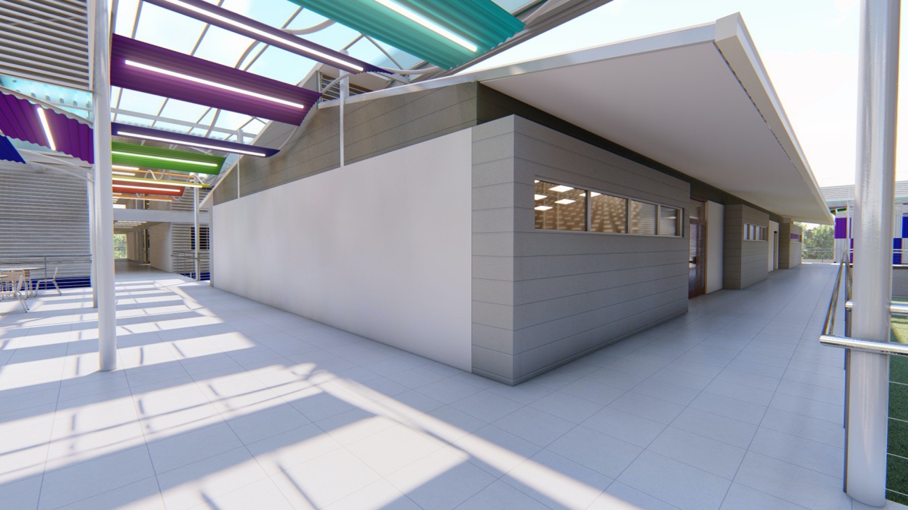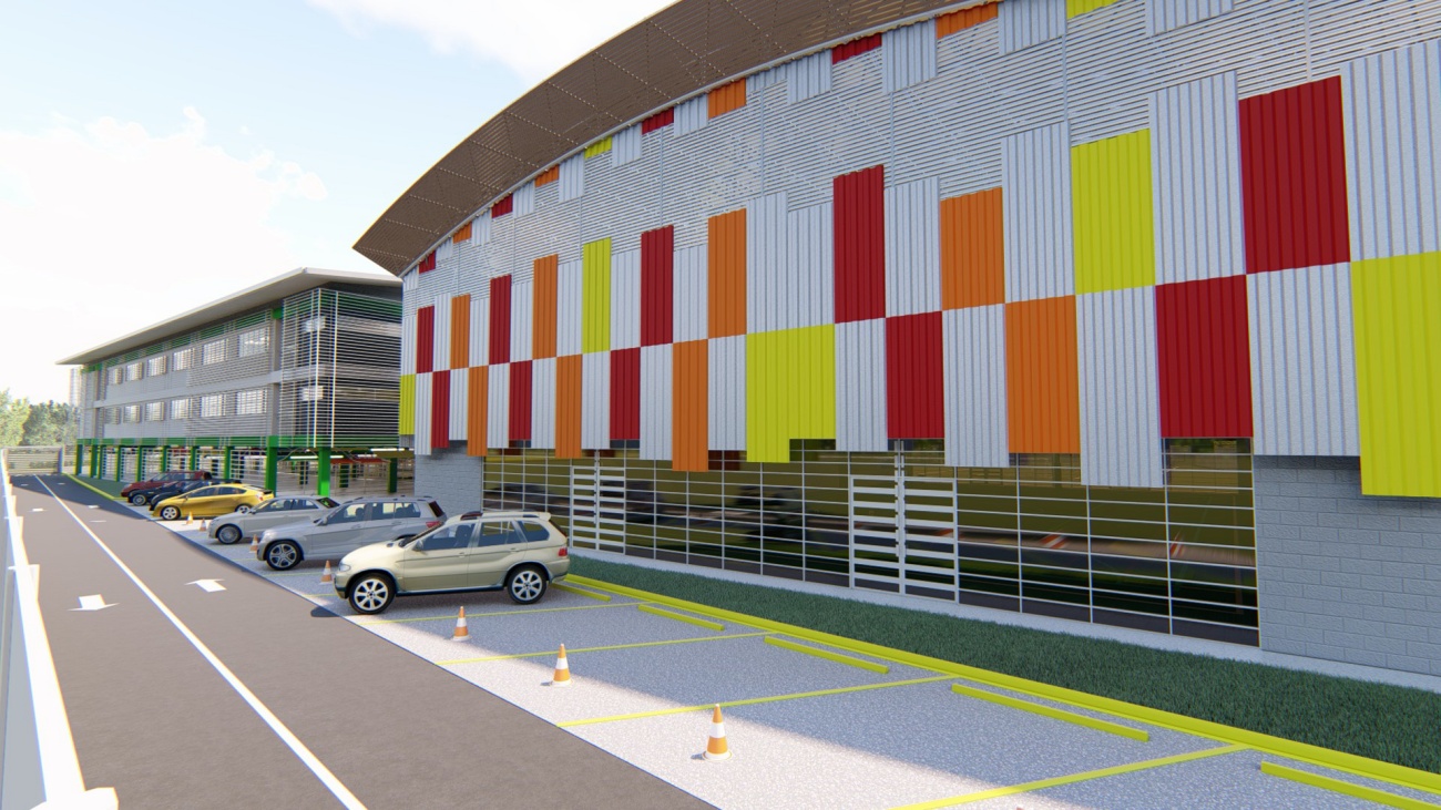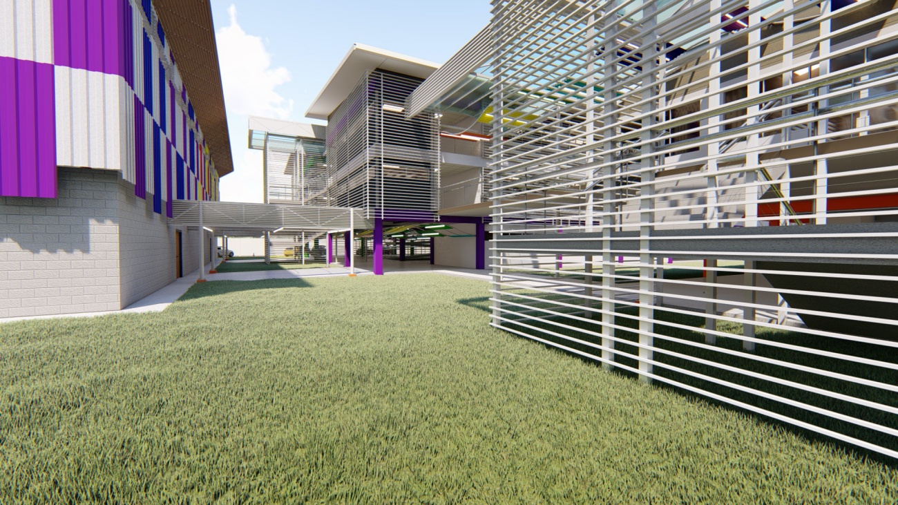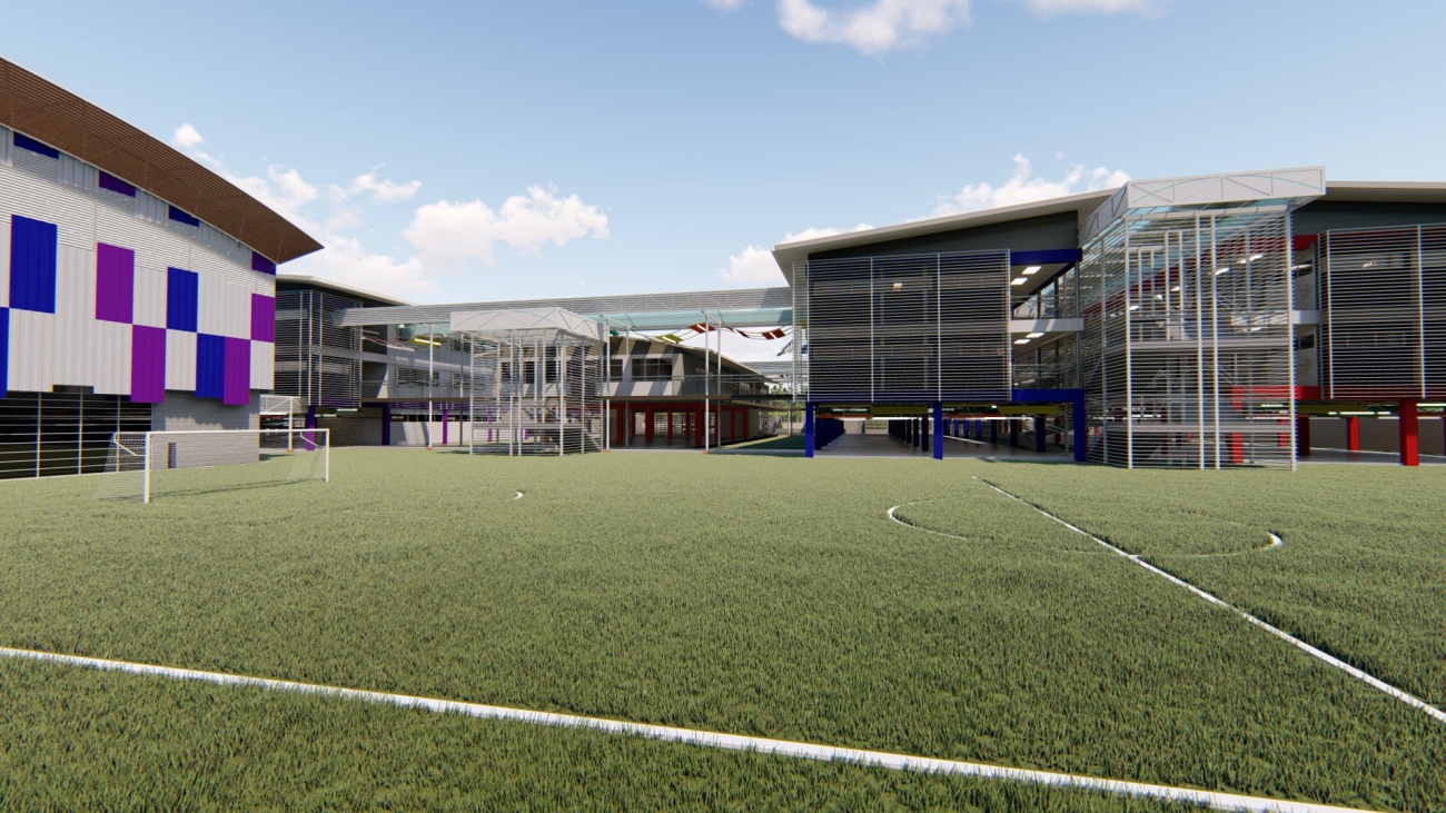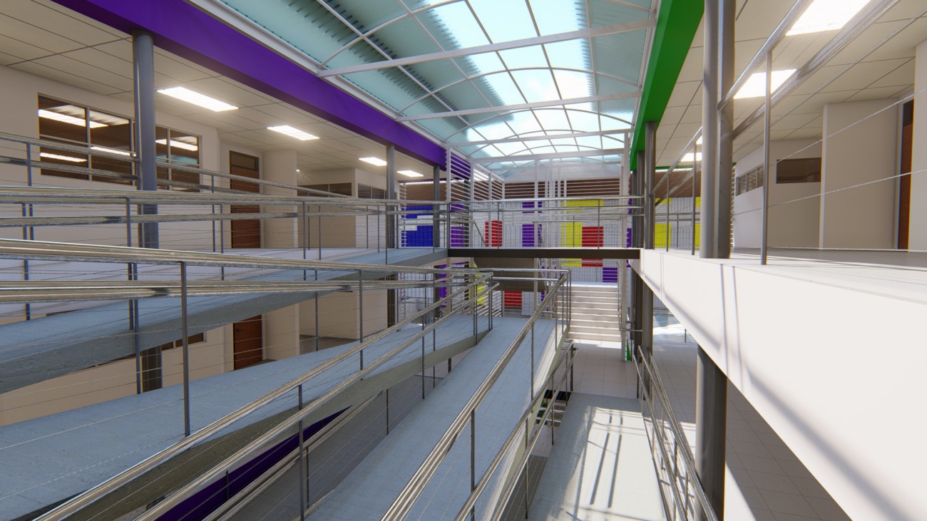 Construcción escuela nueva de 48 aulas de 72m2, con comedor para 120 estudiantes, gimnasio de 1200 m2 y cancha de fútbol con medidas reglamentarias, con parqueos para 12 vehículos y 2 autobuses.