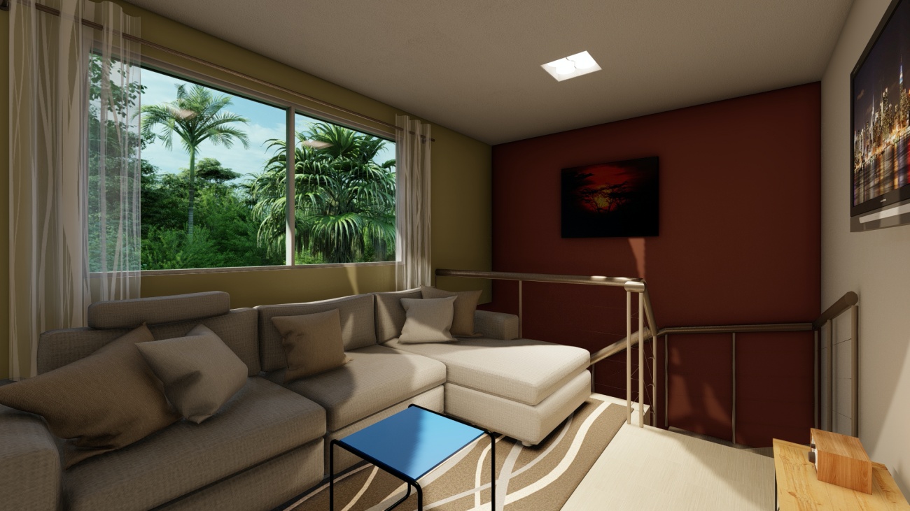 4 dormitorios, sala de tv, cocina, comedor, sala y 3 baños completos.