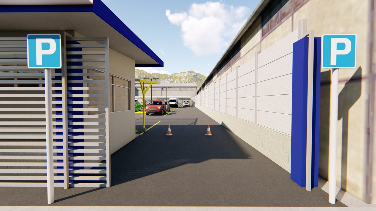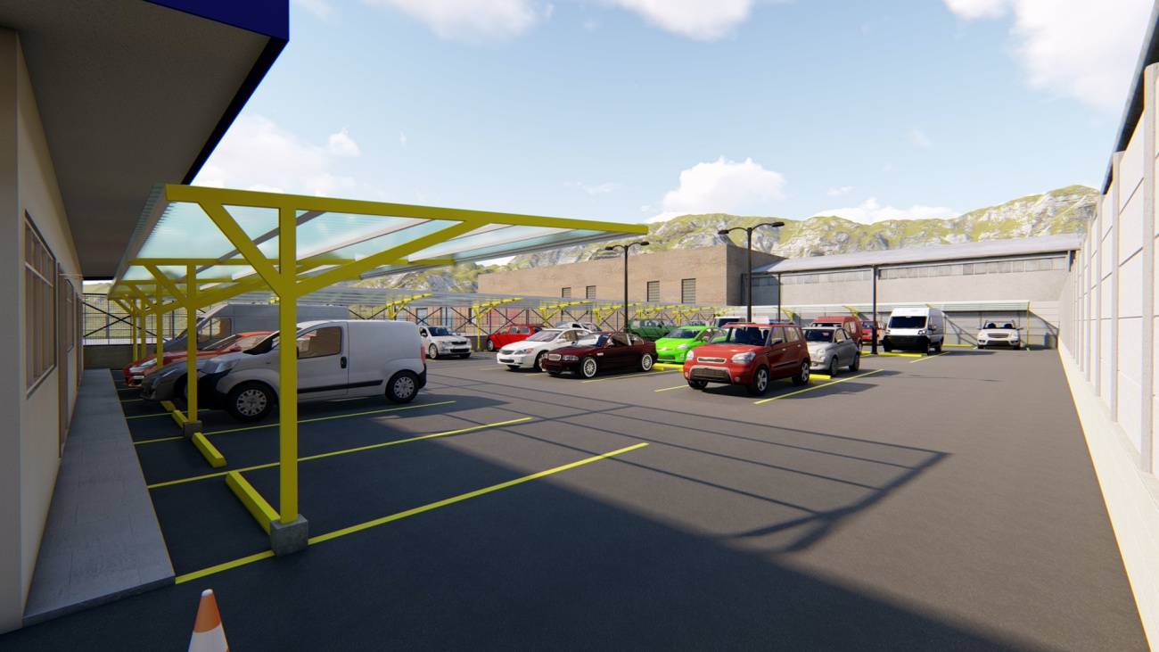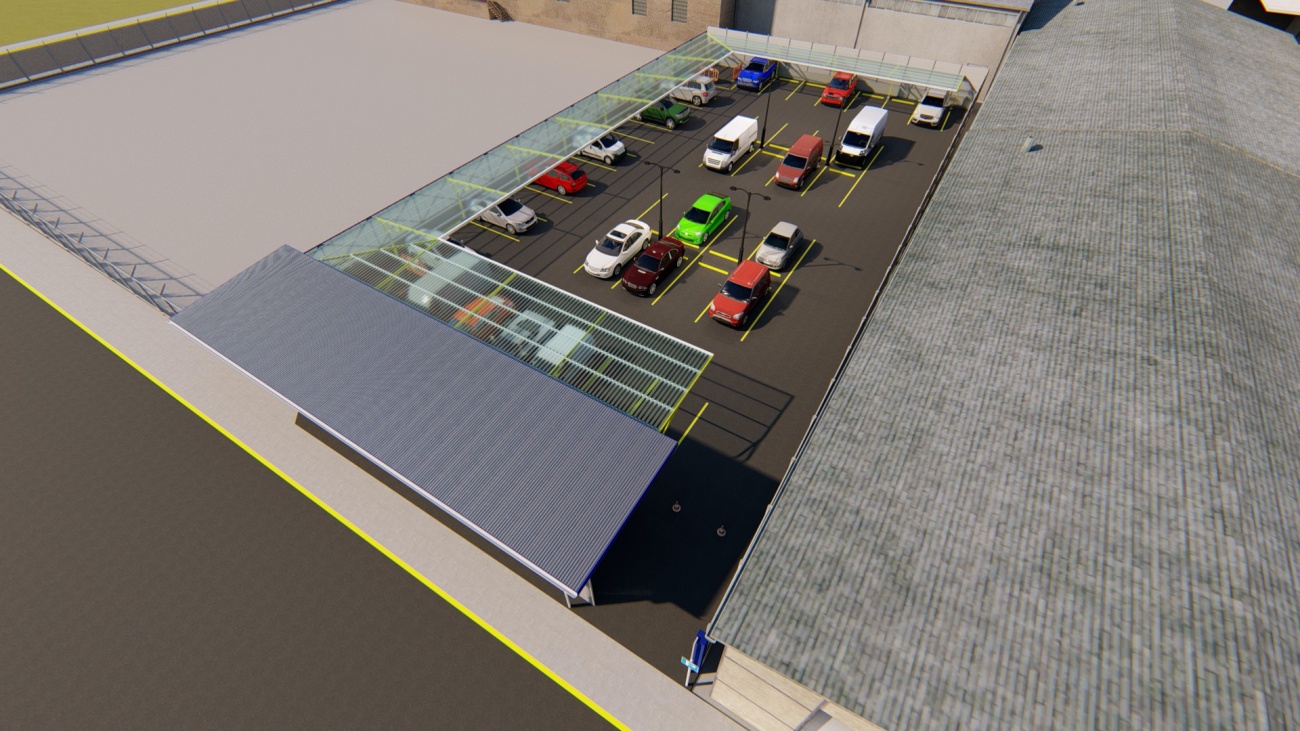 Parqueo público para 120 vehículos distribuidos en dos niveles.