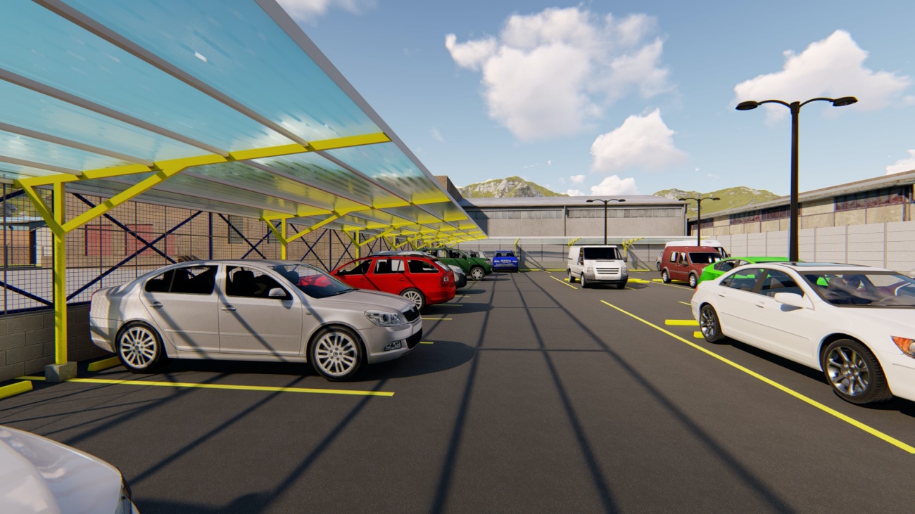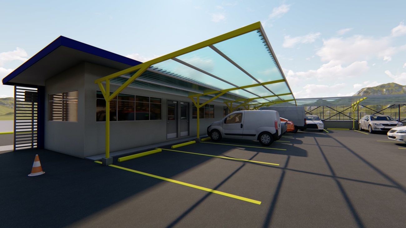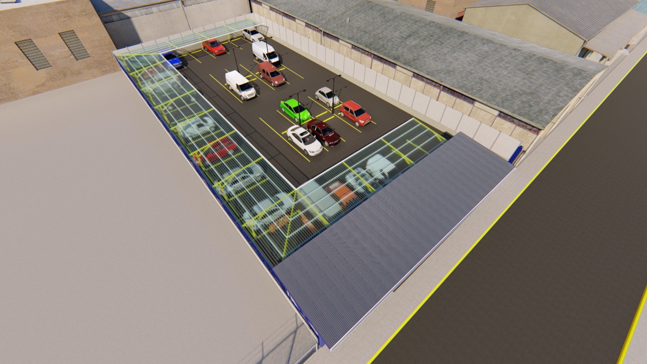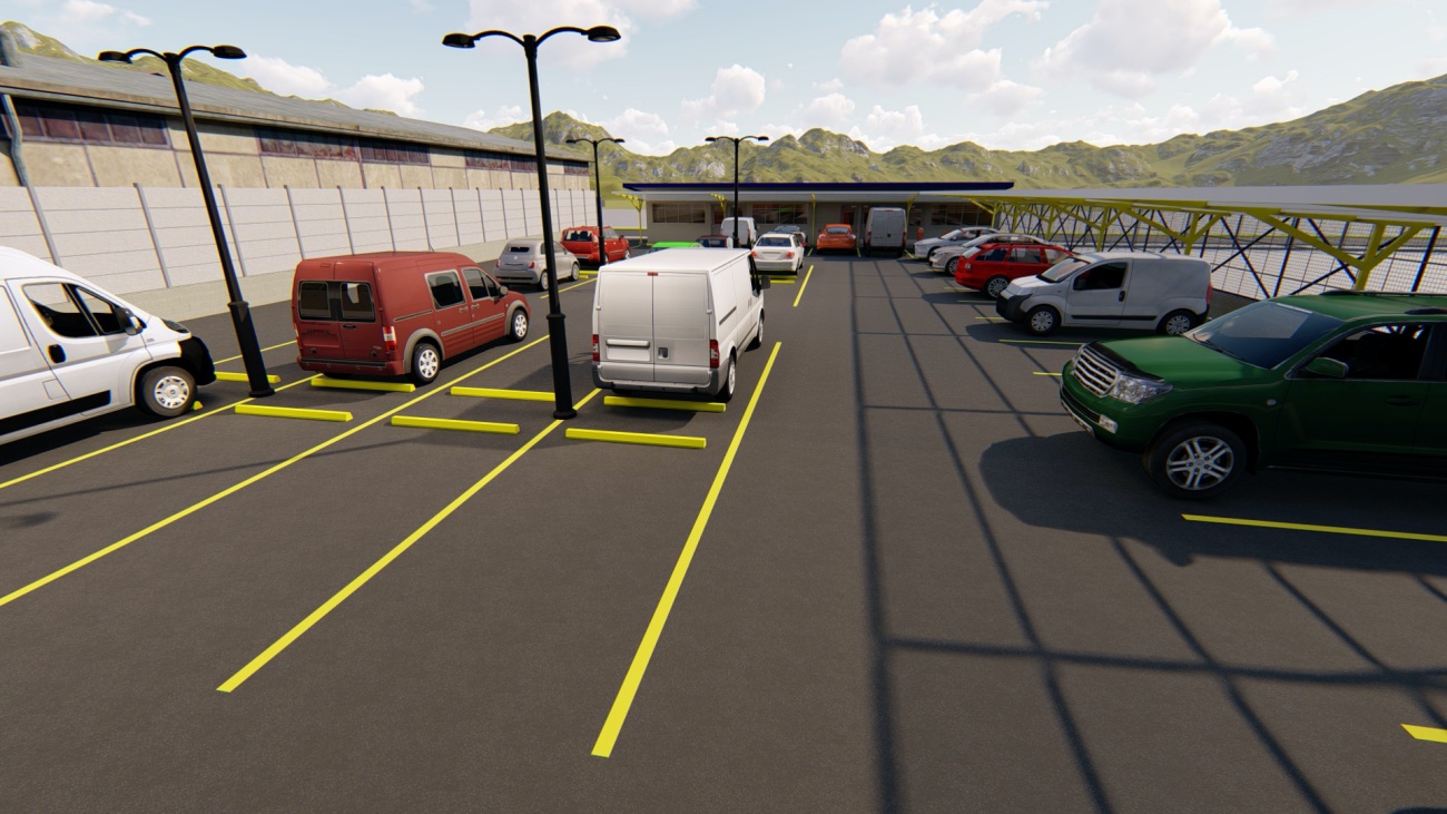 Parqueo público para 120 vehículos distribuidos en dos niveles.