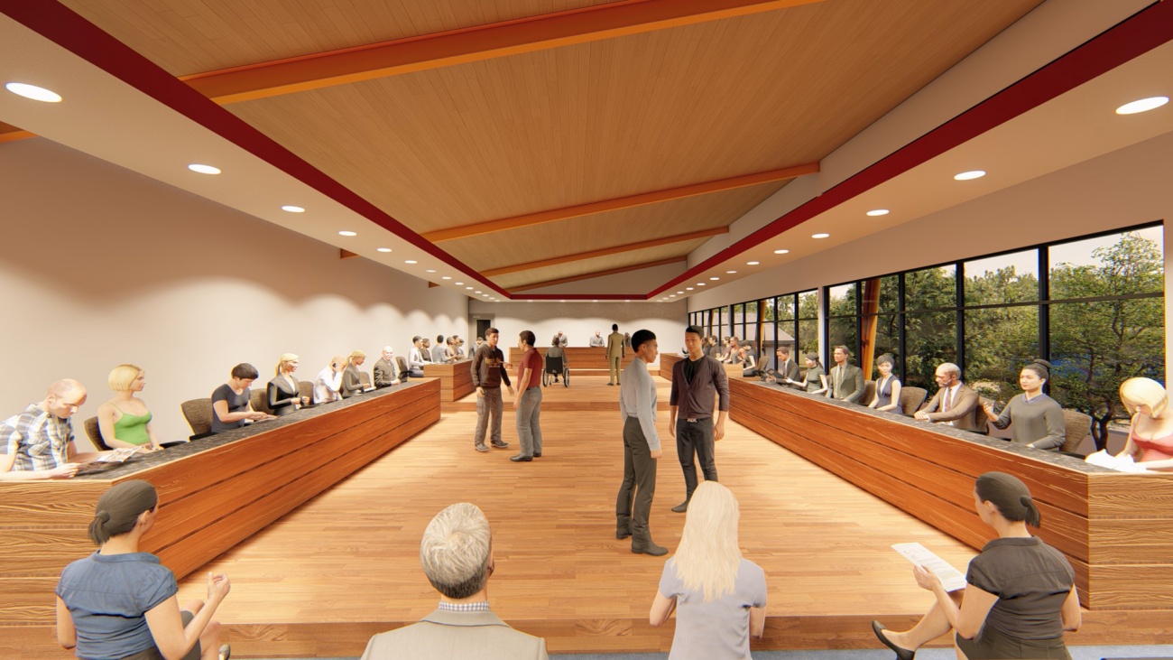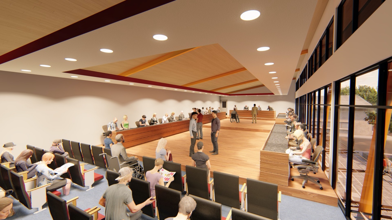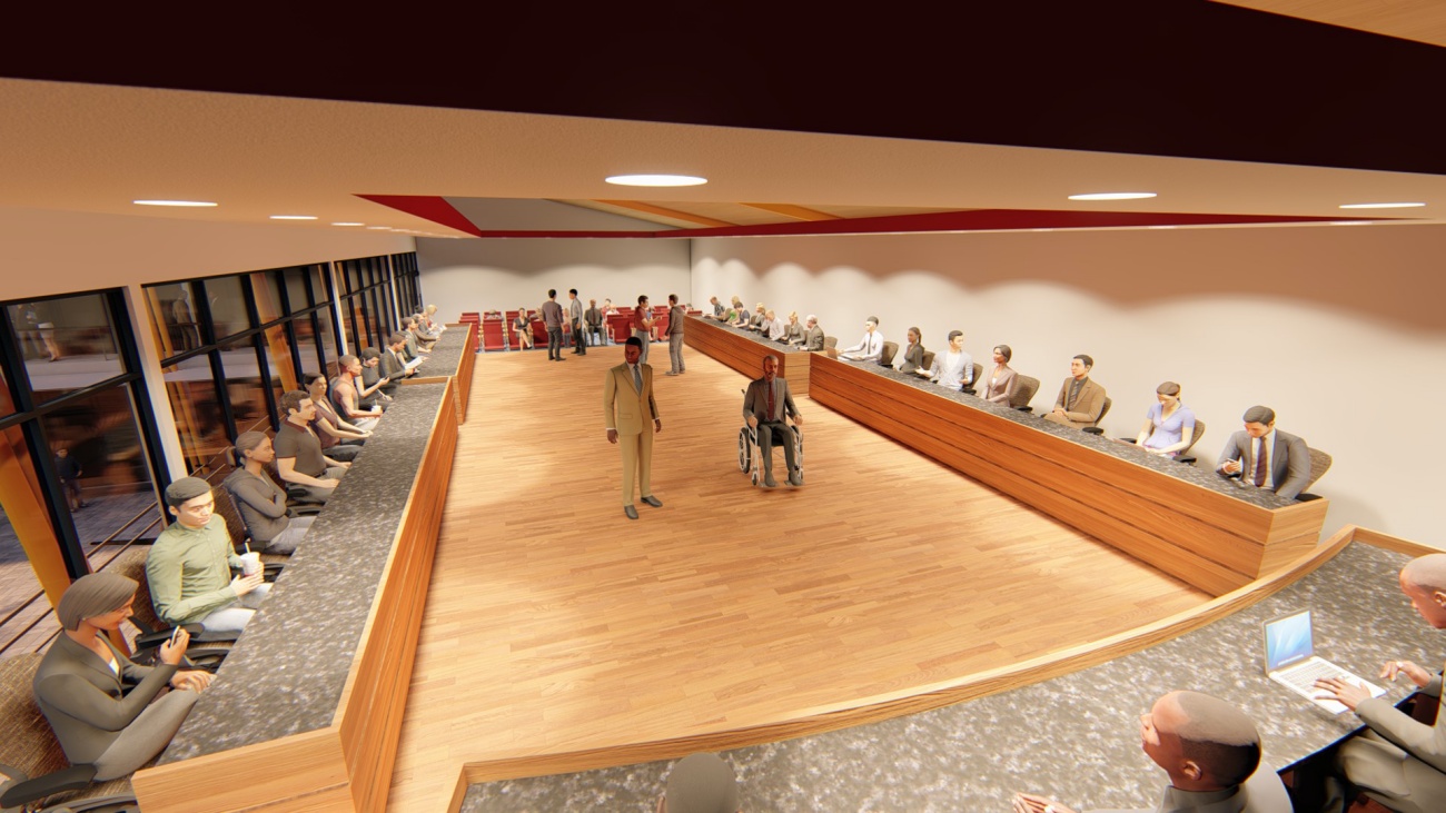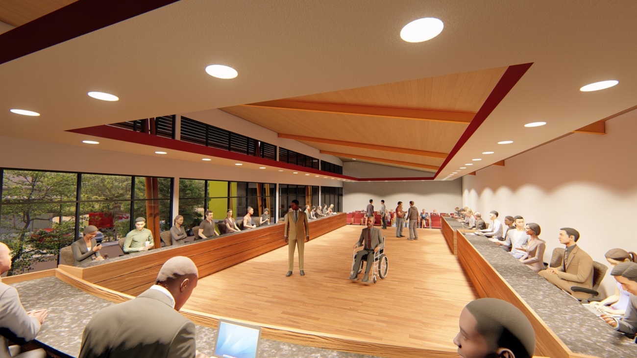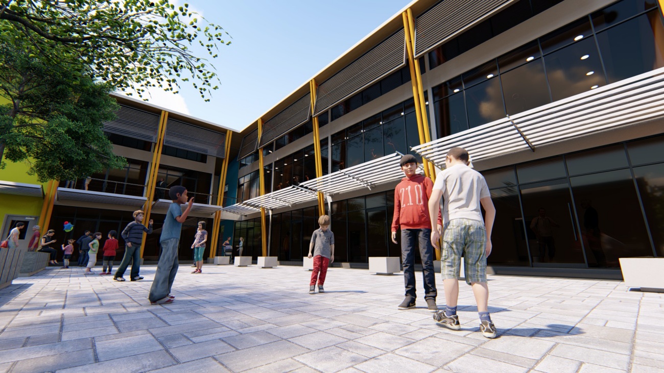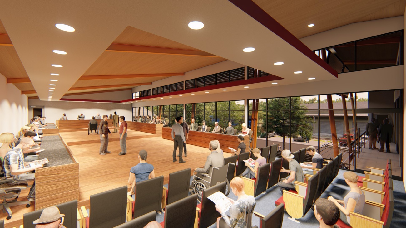 Edificio de 8 locales comerciales y sala del consejo municipal con batería de baños, elevador para cumplimiento de la ley 7600 y plaza pública para actividades exteriores.