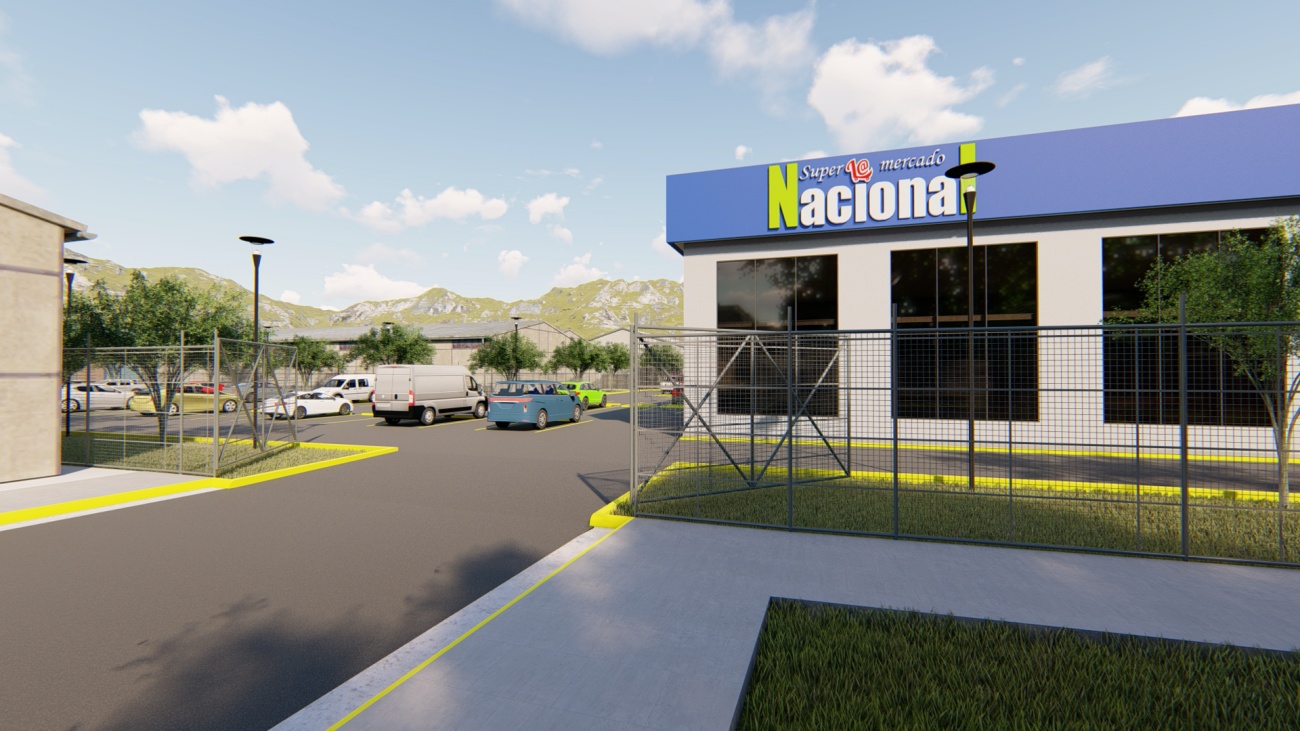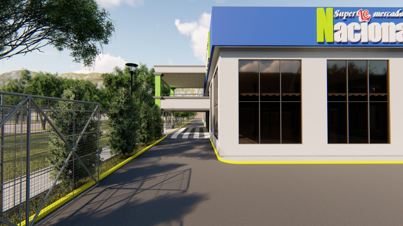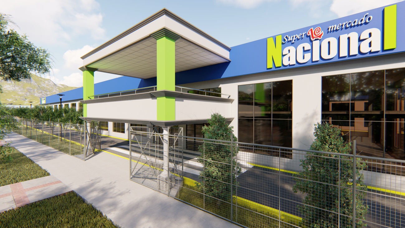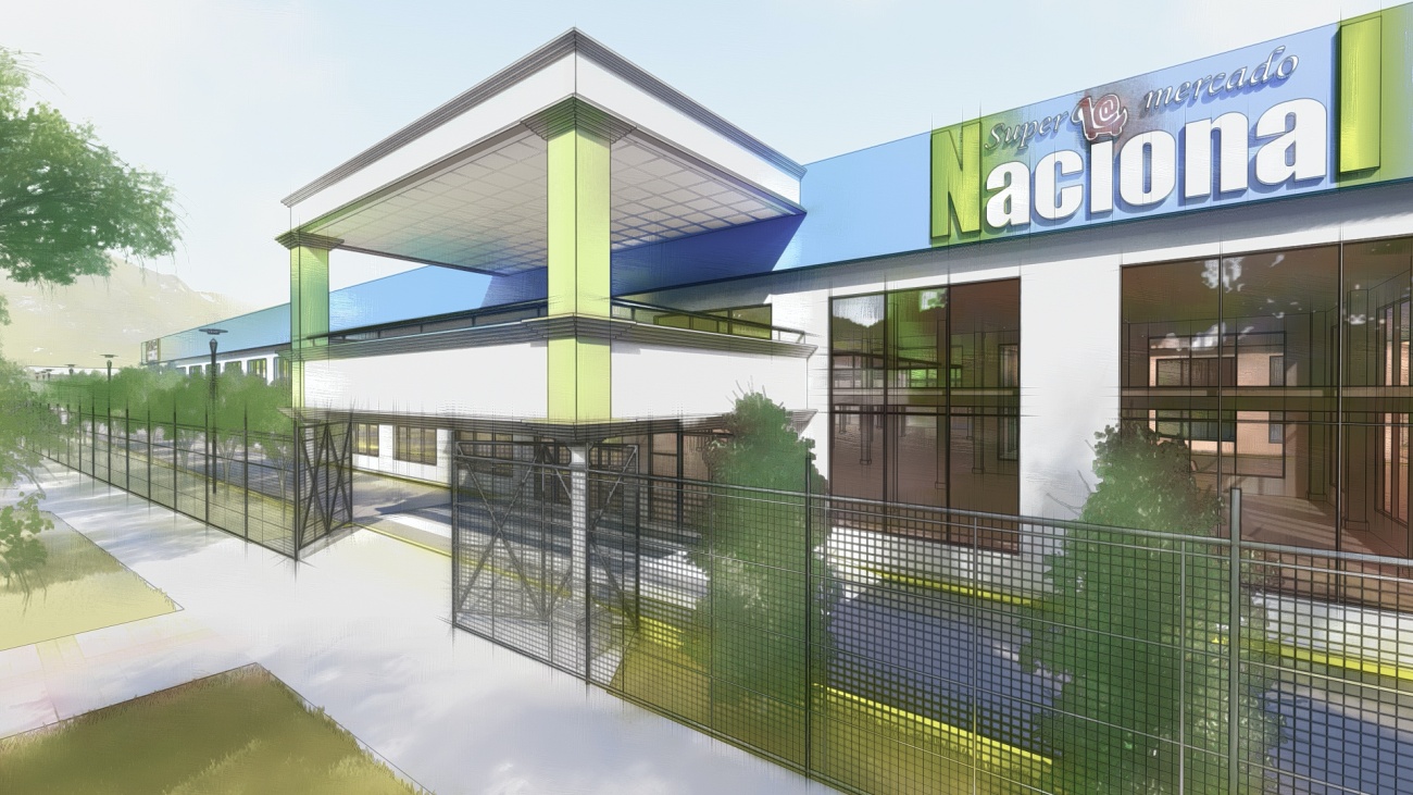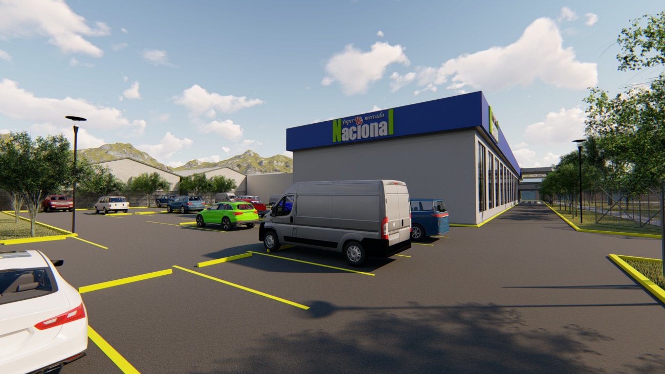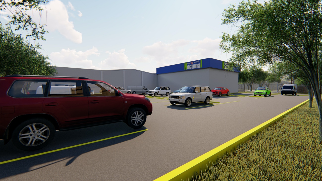Ampliación de supermercado con bodega y espacios de parqueos para 80 vehículos.