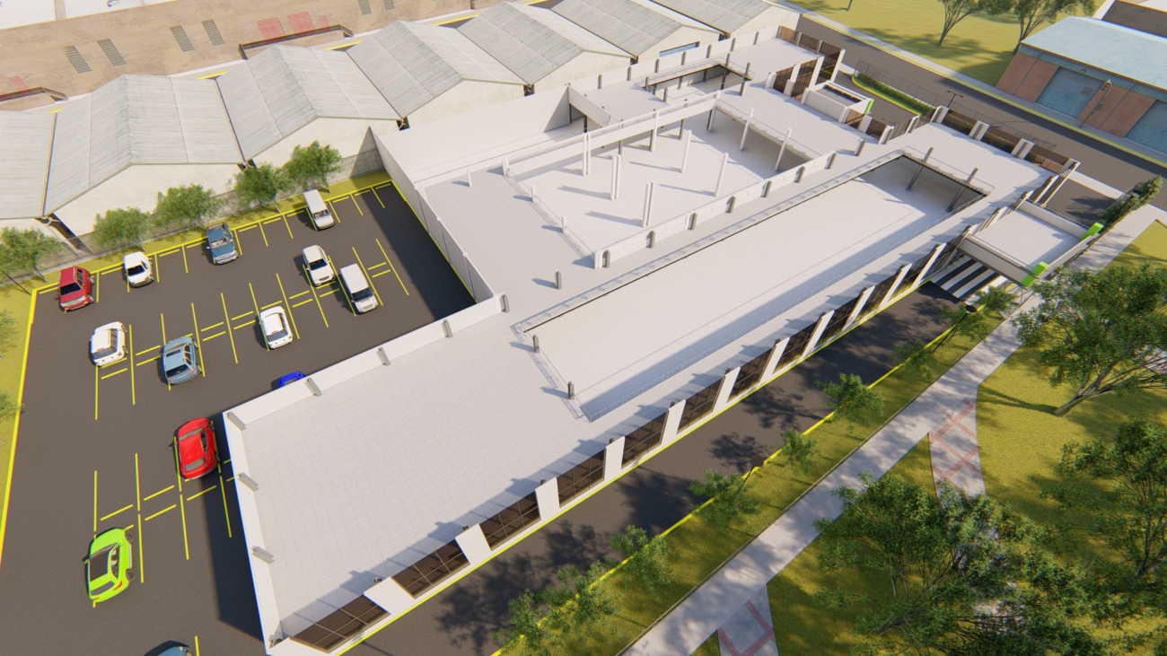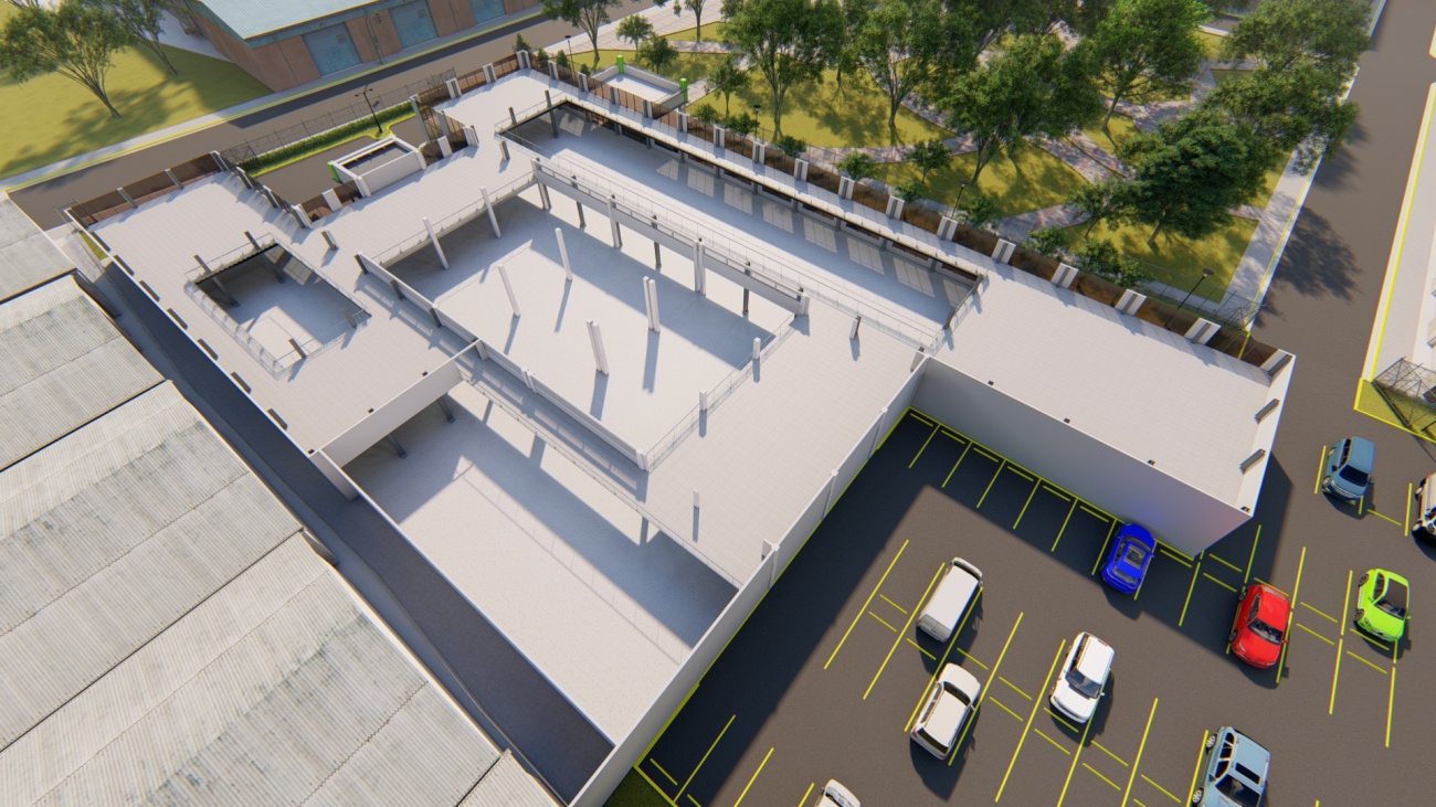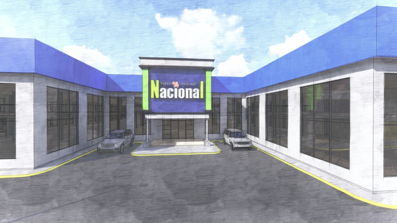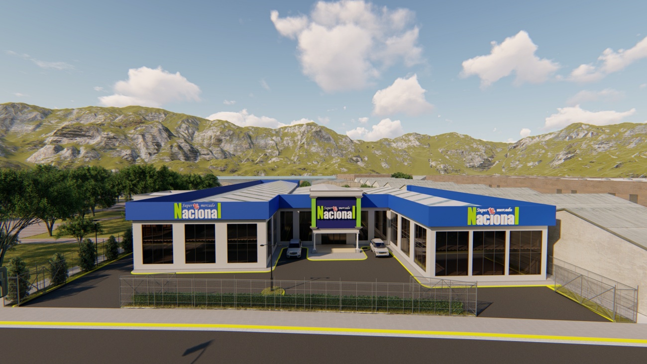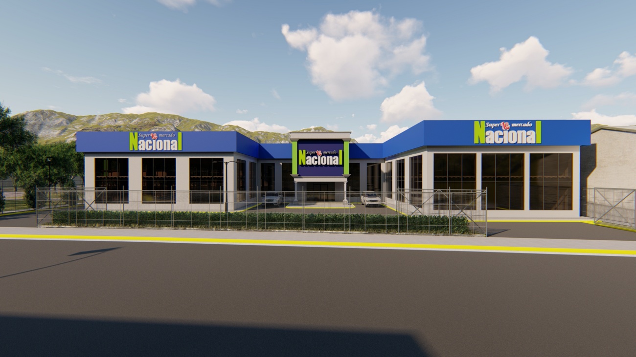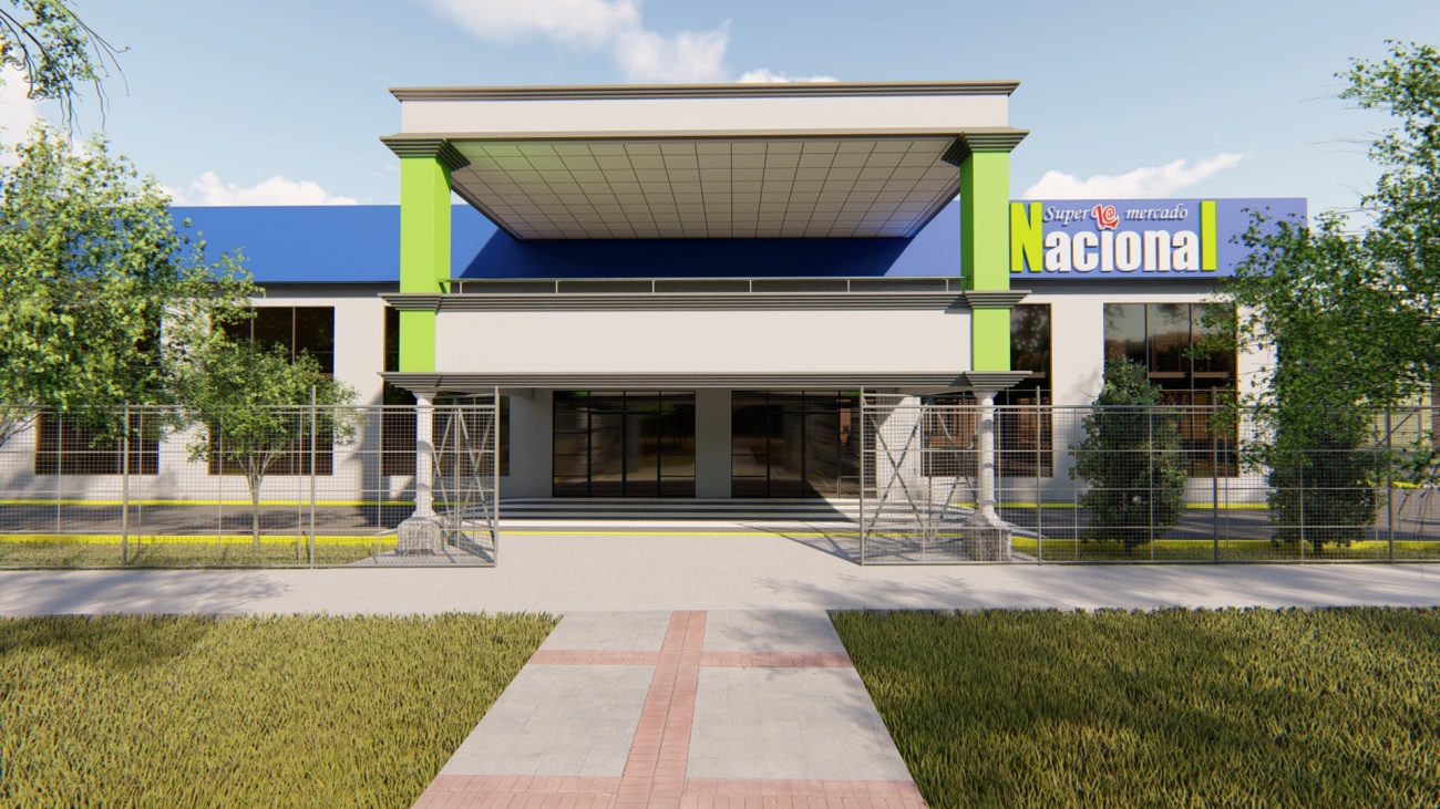 Ampliación de supermercado con bodega y espacios de parqueos para 80 vehículos.