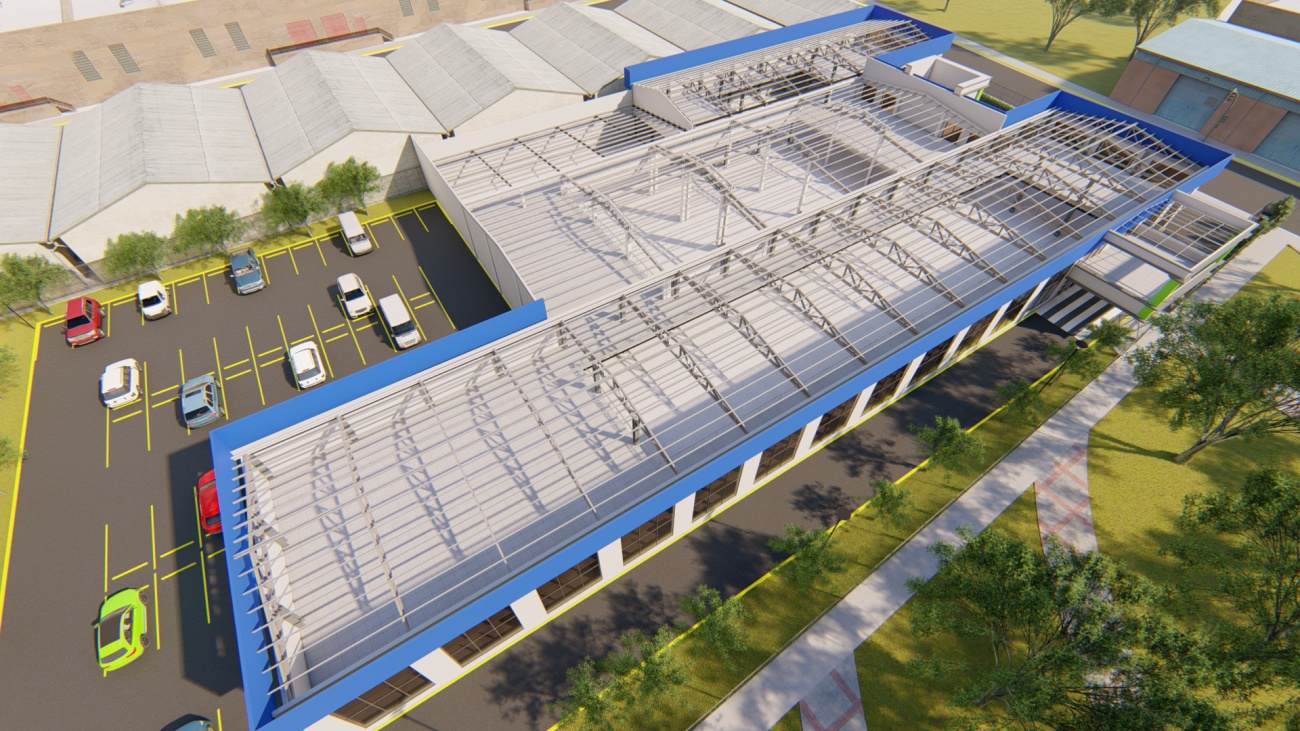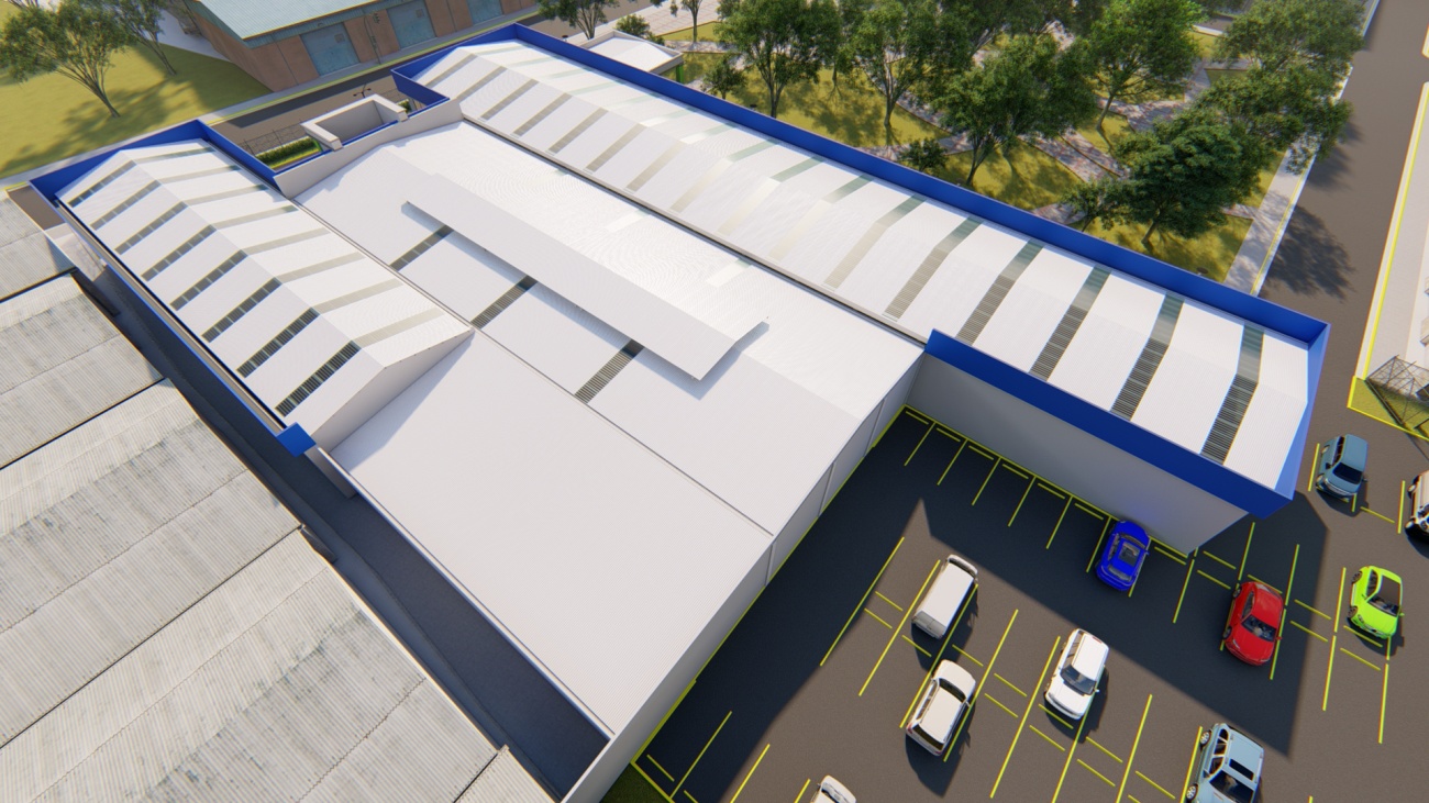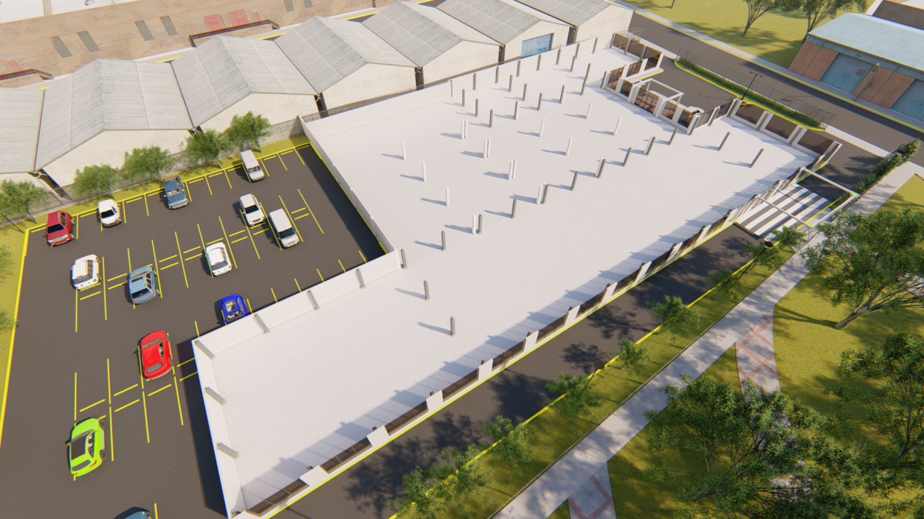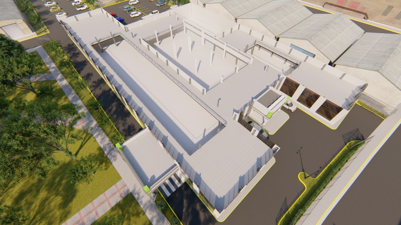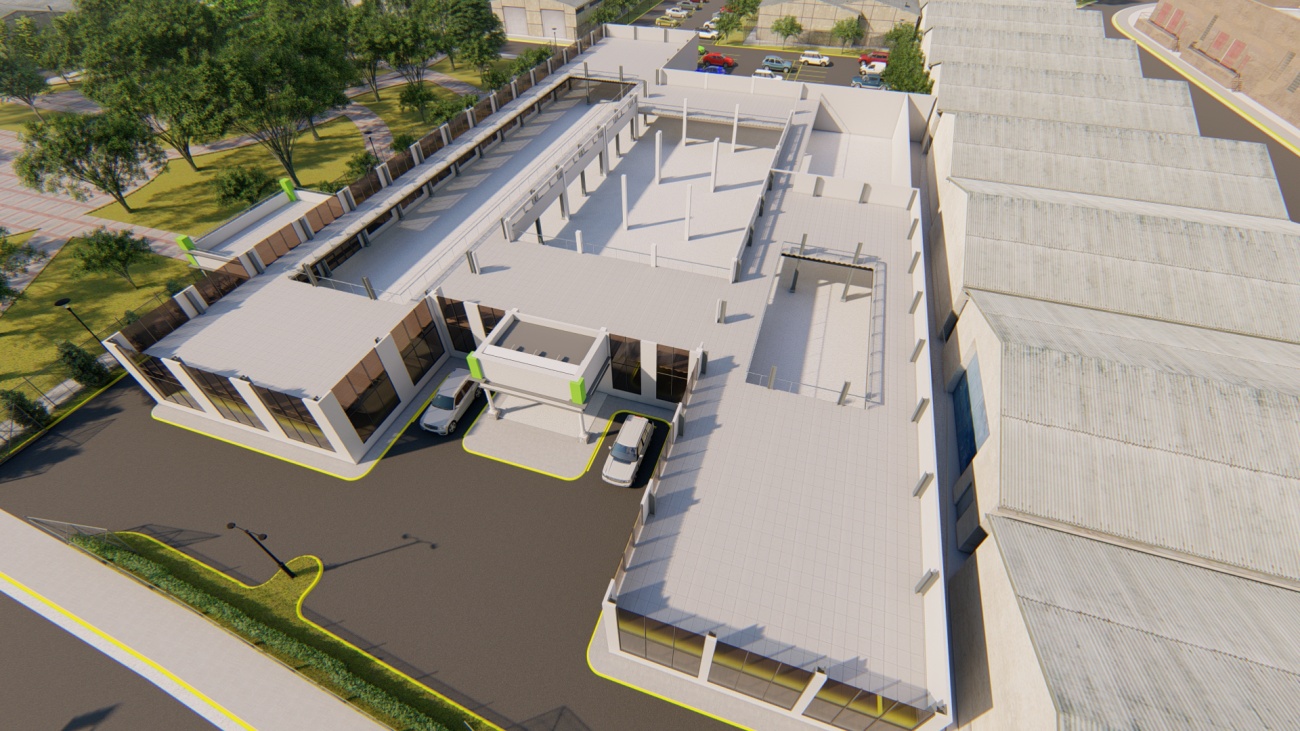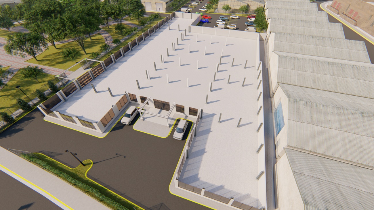 Ampliación de supermercado con bodega y espacios de parqueos para 80 vehículos.