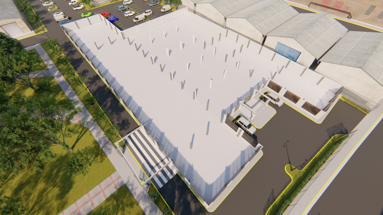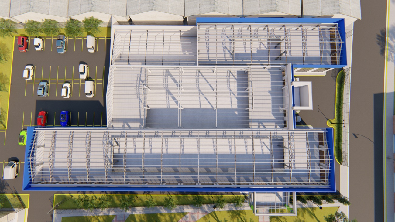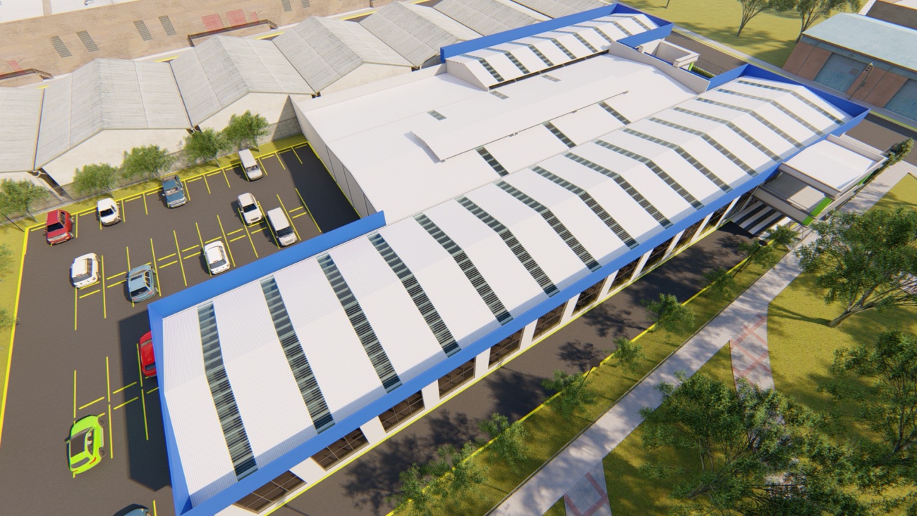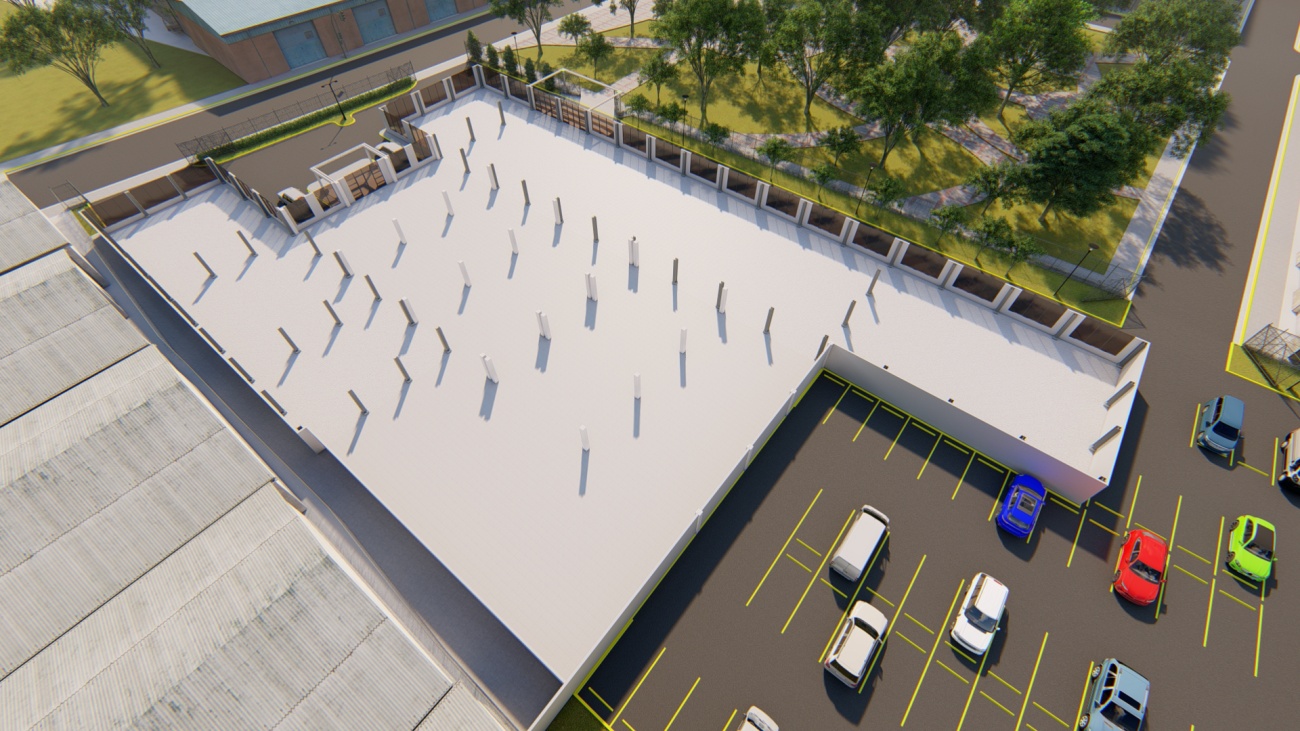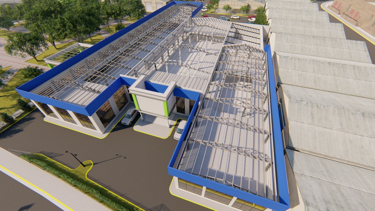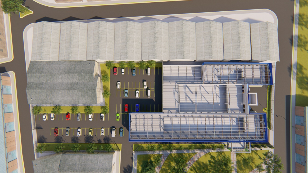 Ampliación de supermercado con bodega y espacios de parqueos para 80 vehículos.