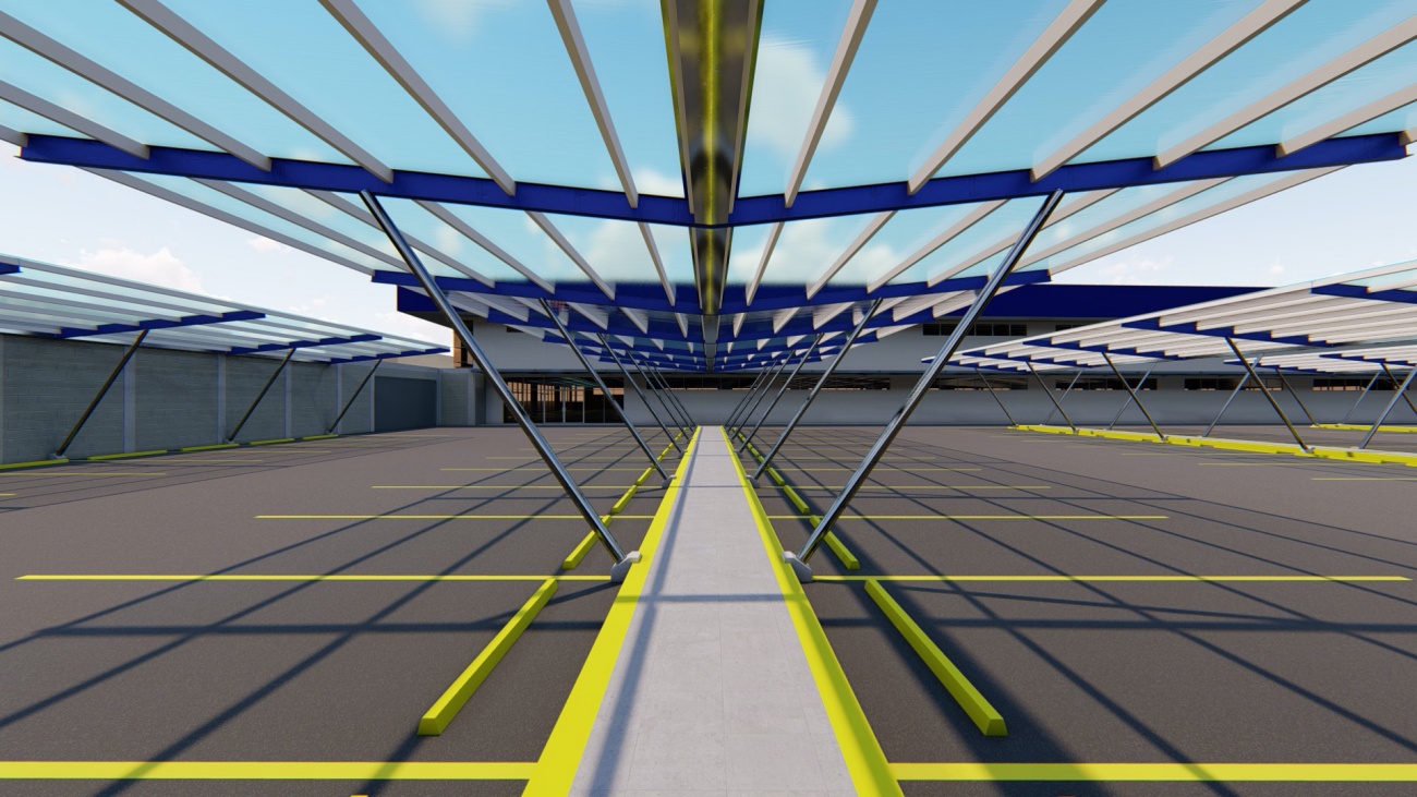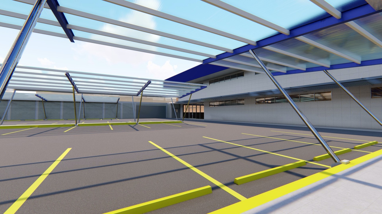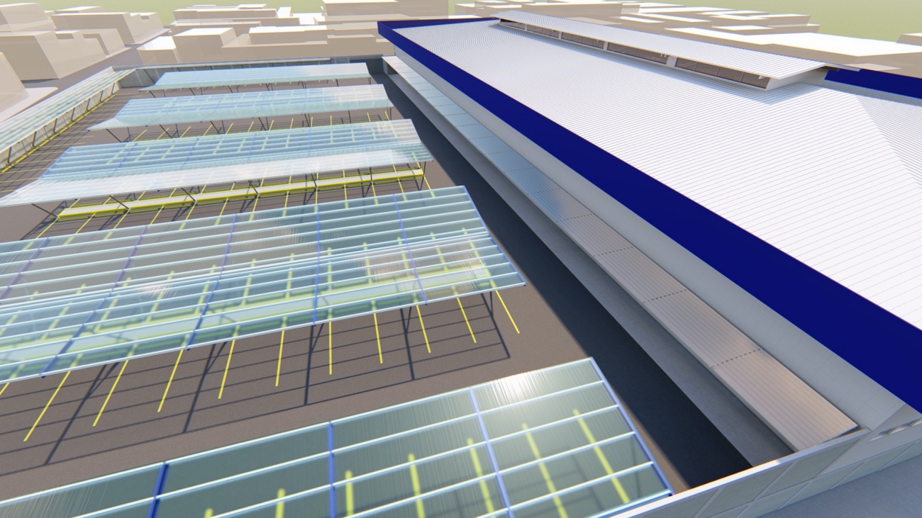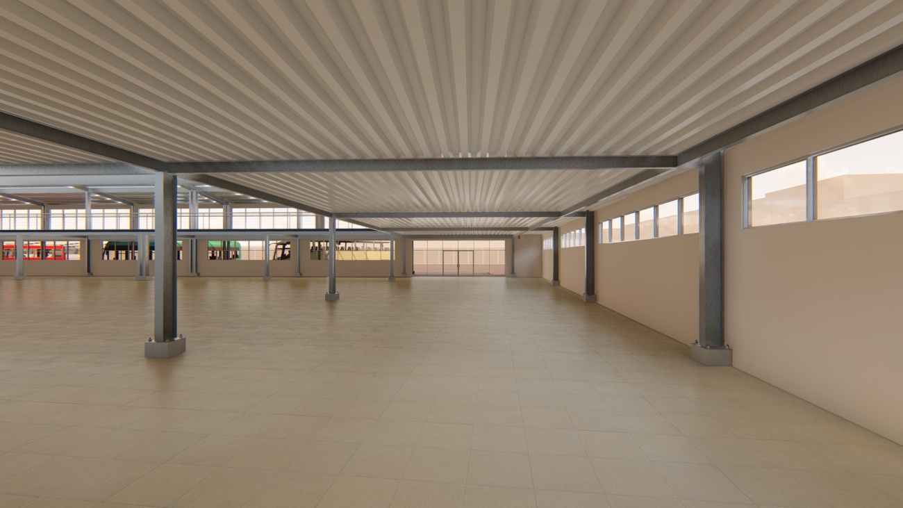 Supermercado de 4500 m2 con edificio de parque para 80 vehículos y terminal de buses para 11 líneas del sector de Heredia.