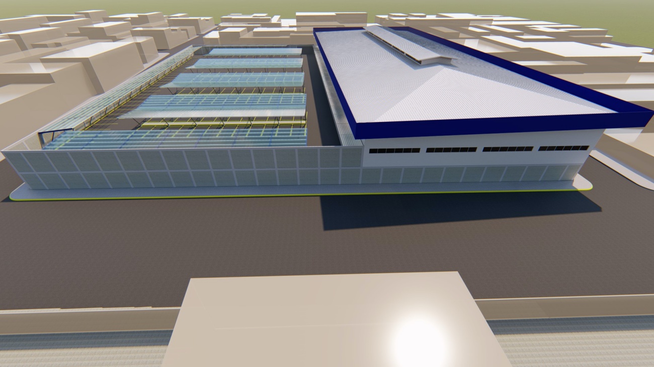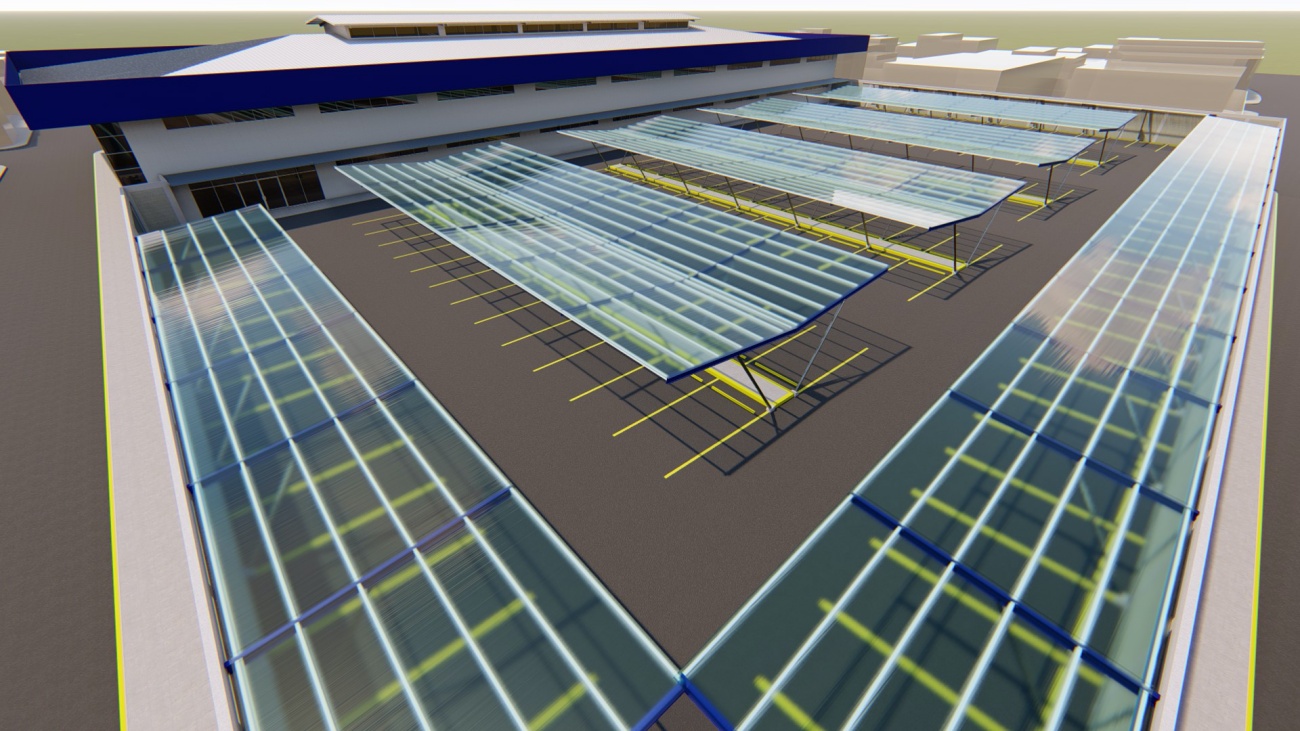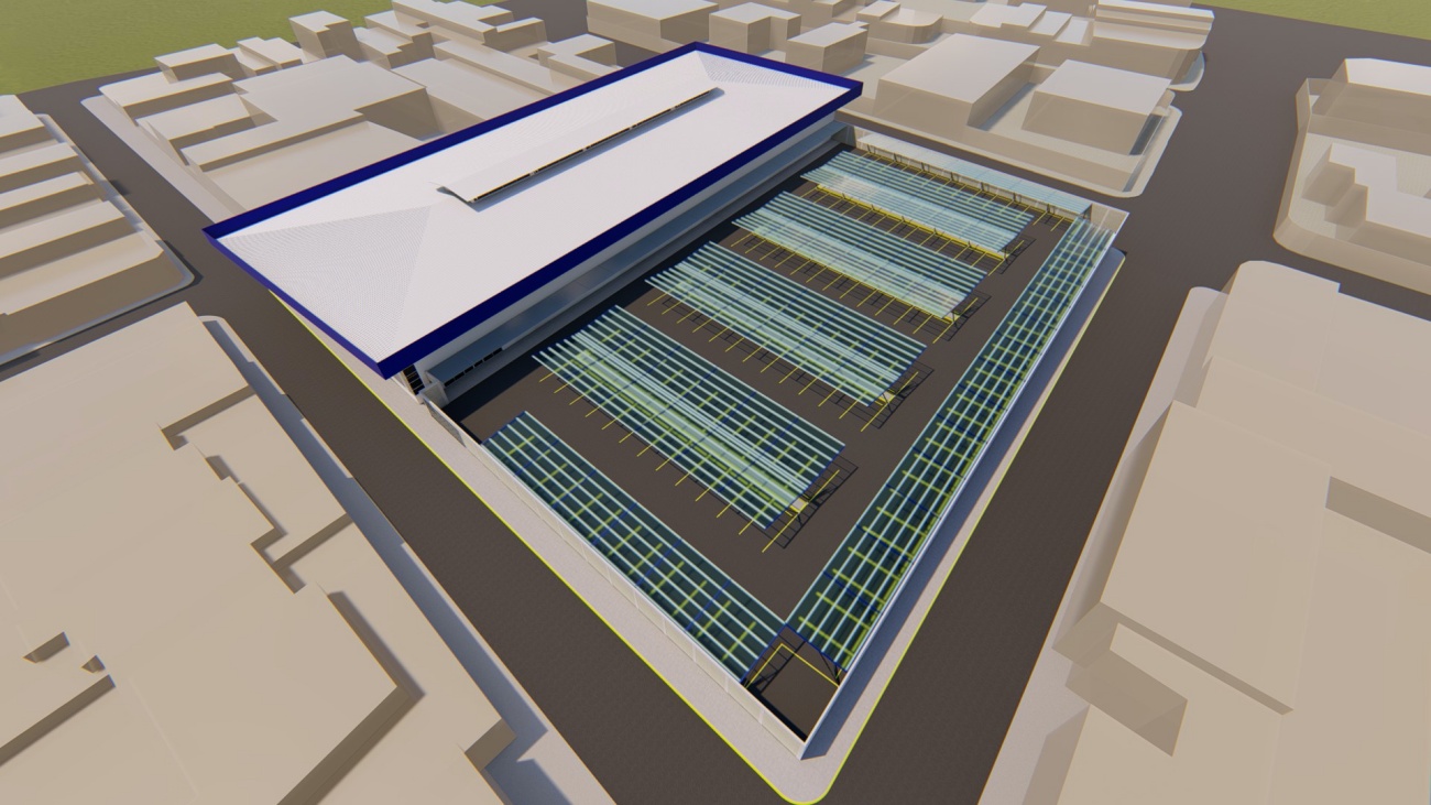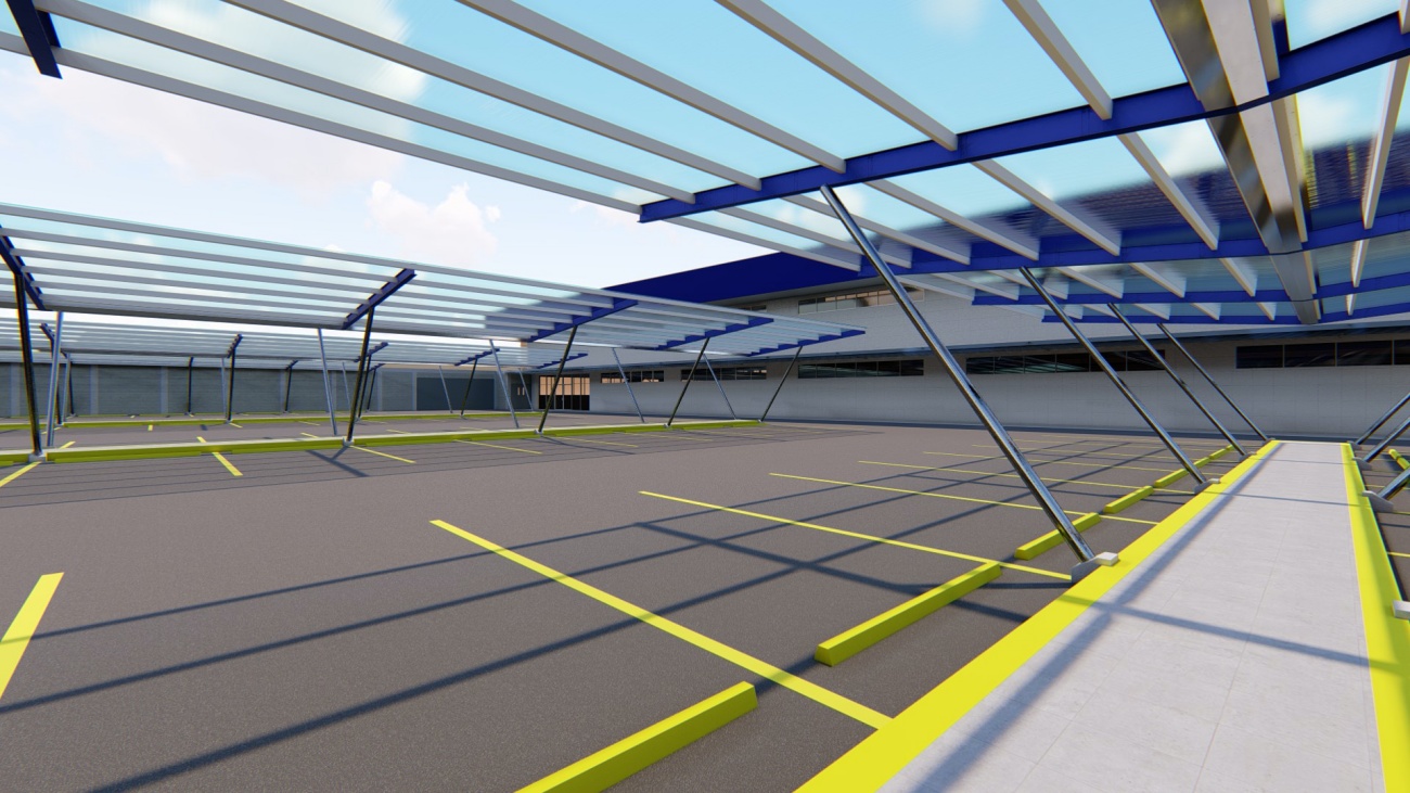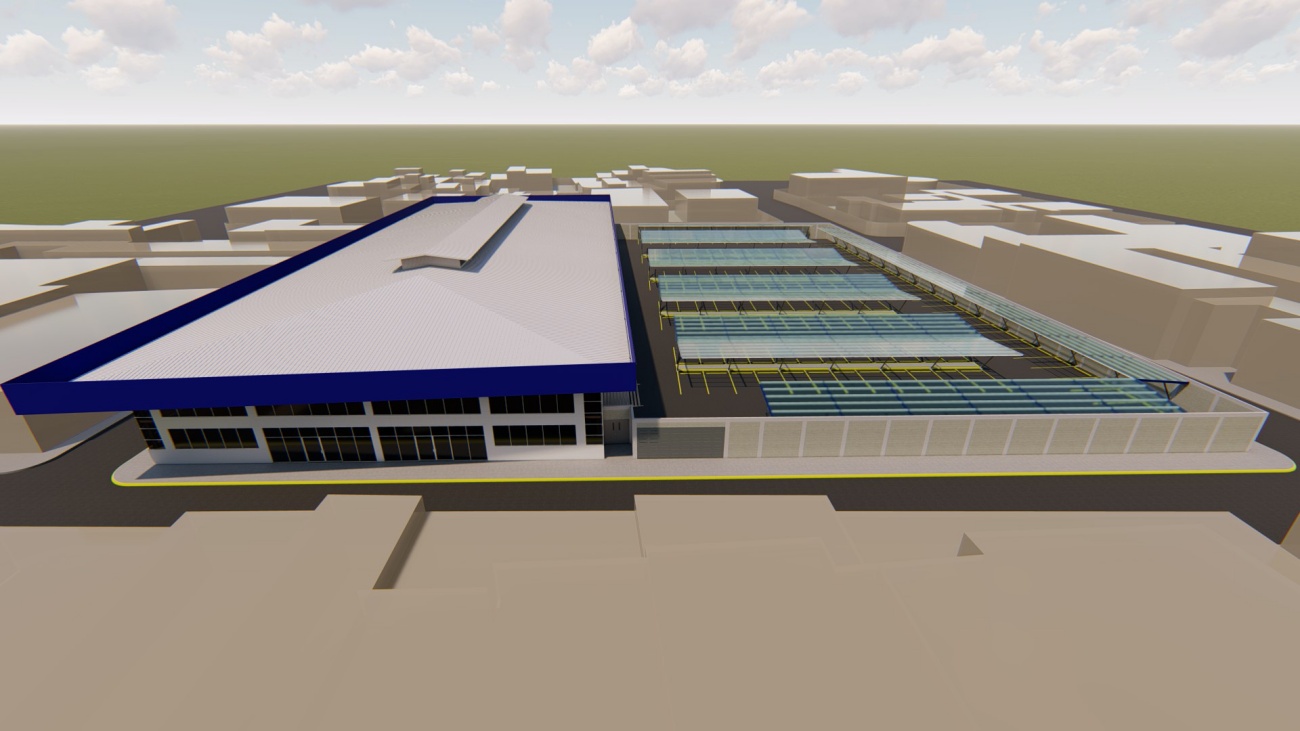 Supermercado de 4500 m2 con edificio de parque para 80 vehículos y terminal de buses para 11 líneas del sector de Heredia.