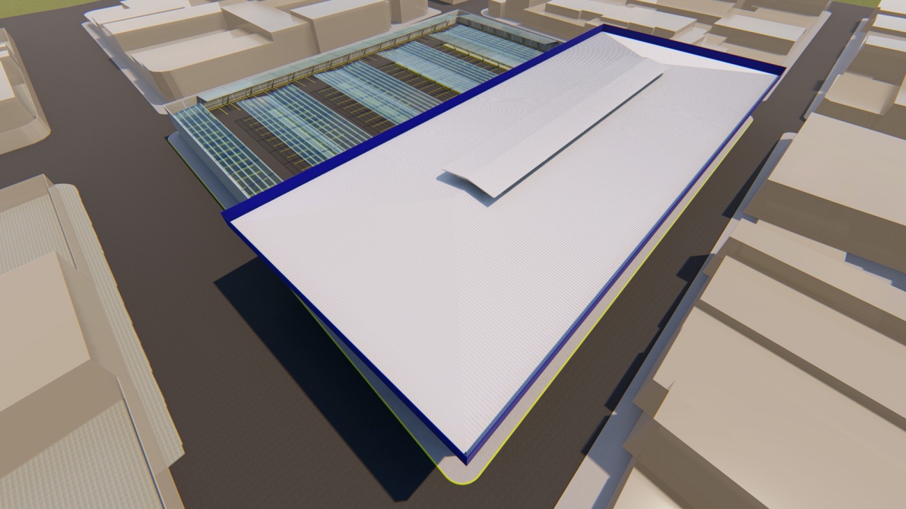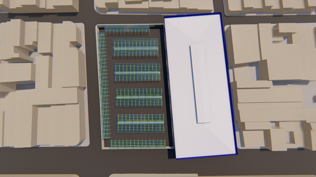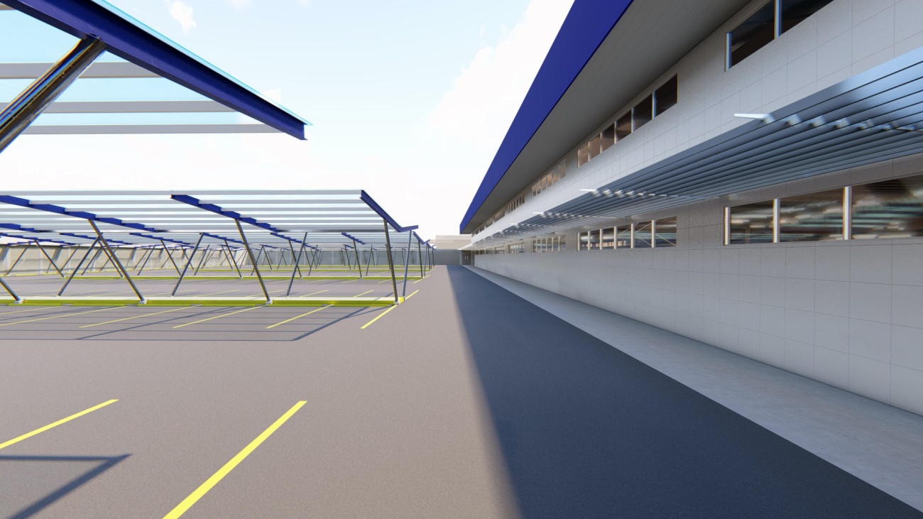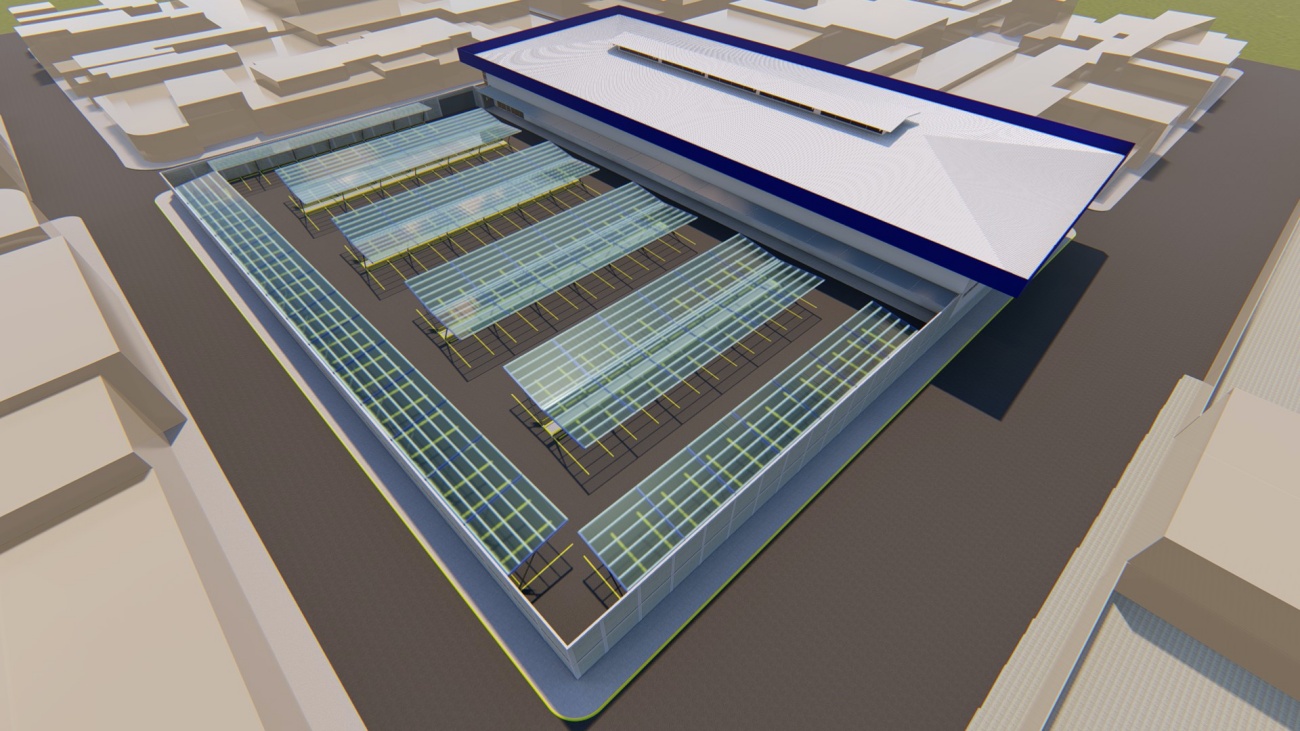 Supermercado de 4500 m2 con edificio de parque para 80 vehículos y terminal de buses para 11 líneas del sector de Heredia.