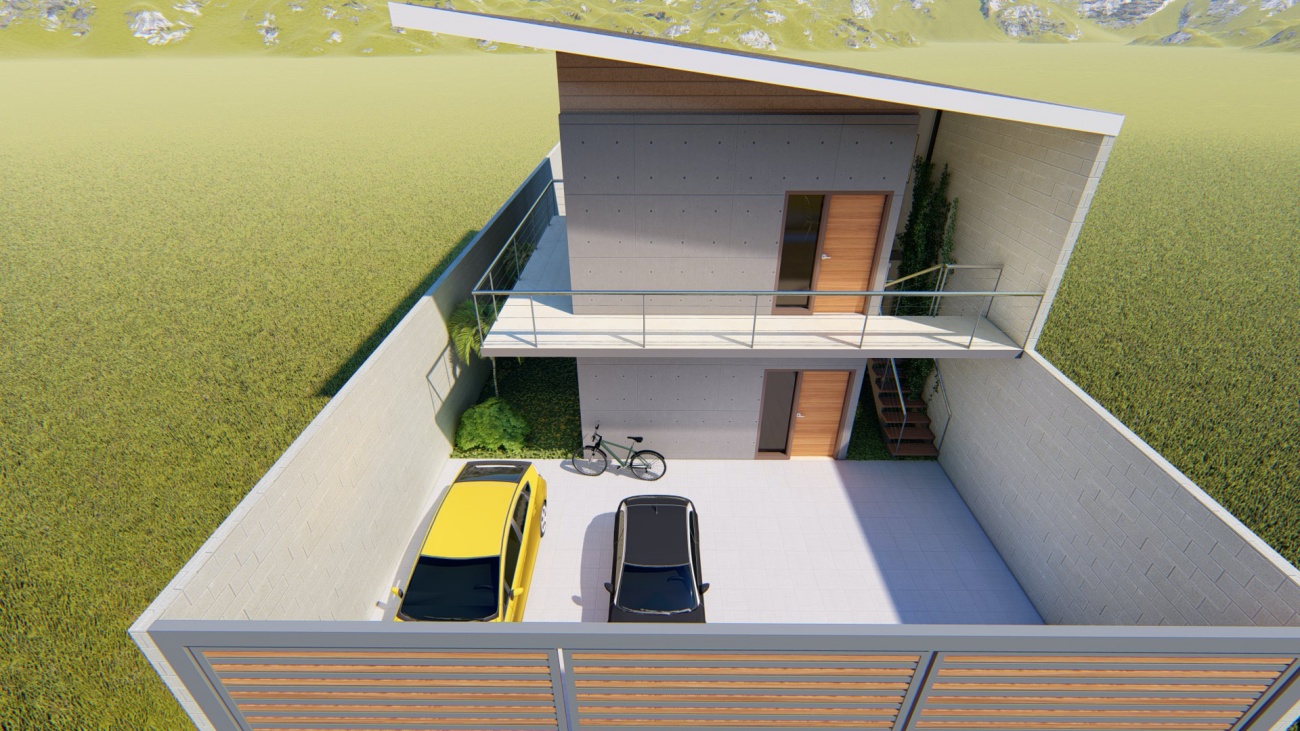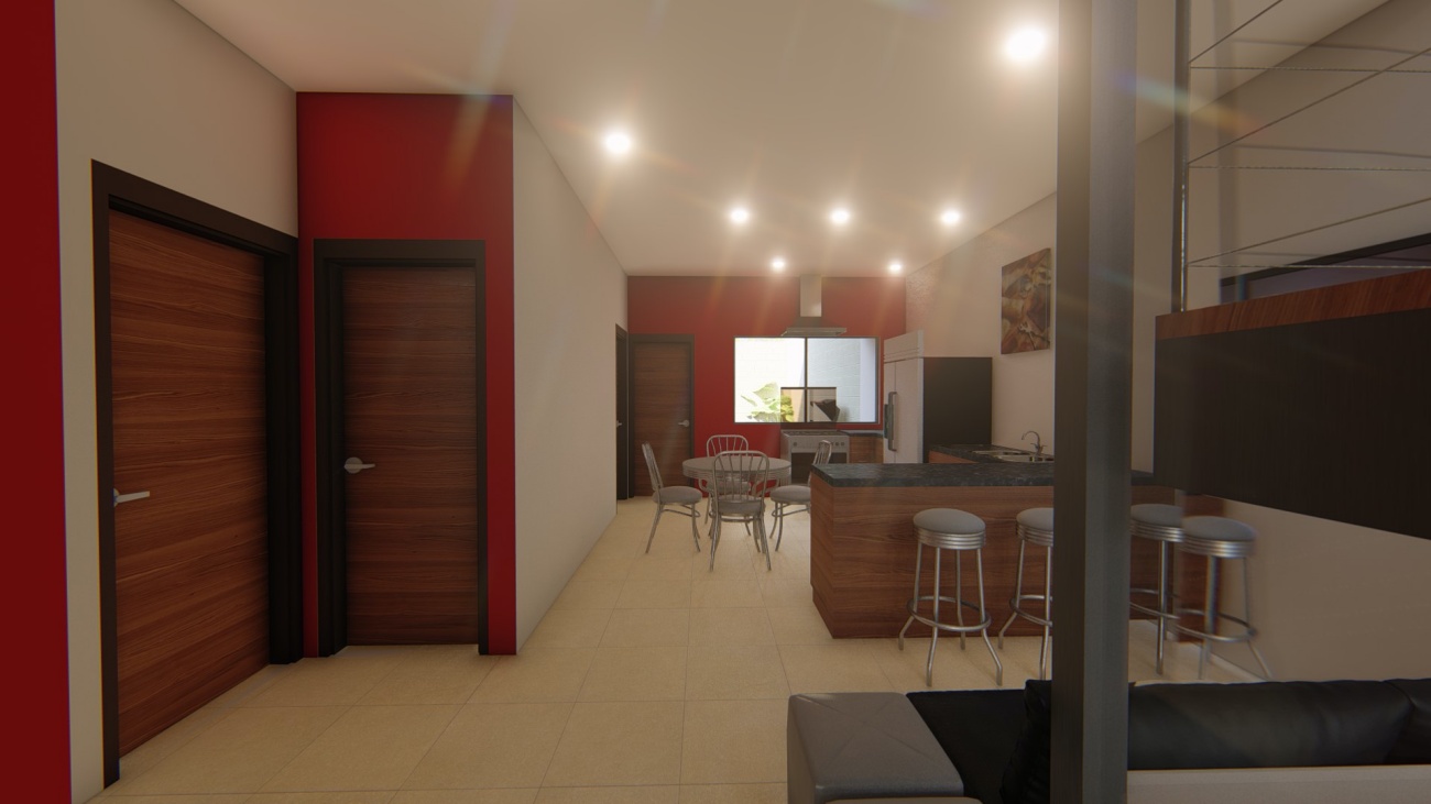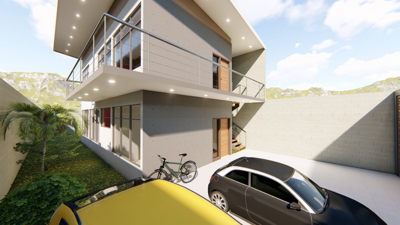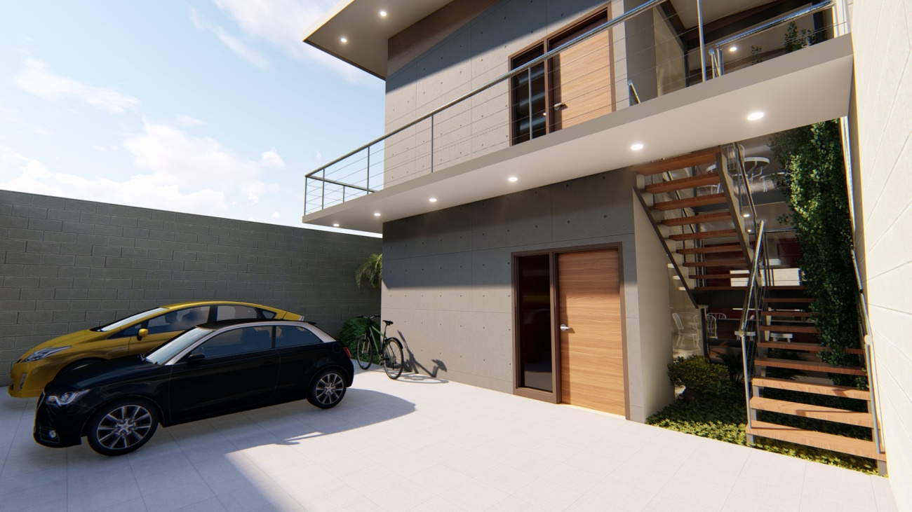 Apartamentos dobles con dos dormitorios, sala, comedor, cocina y cochera para 3 carros.