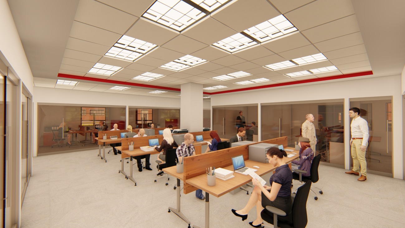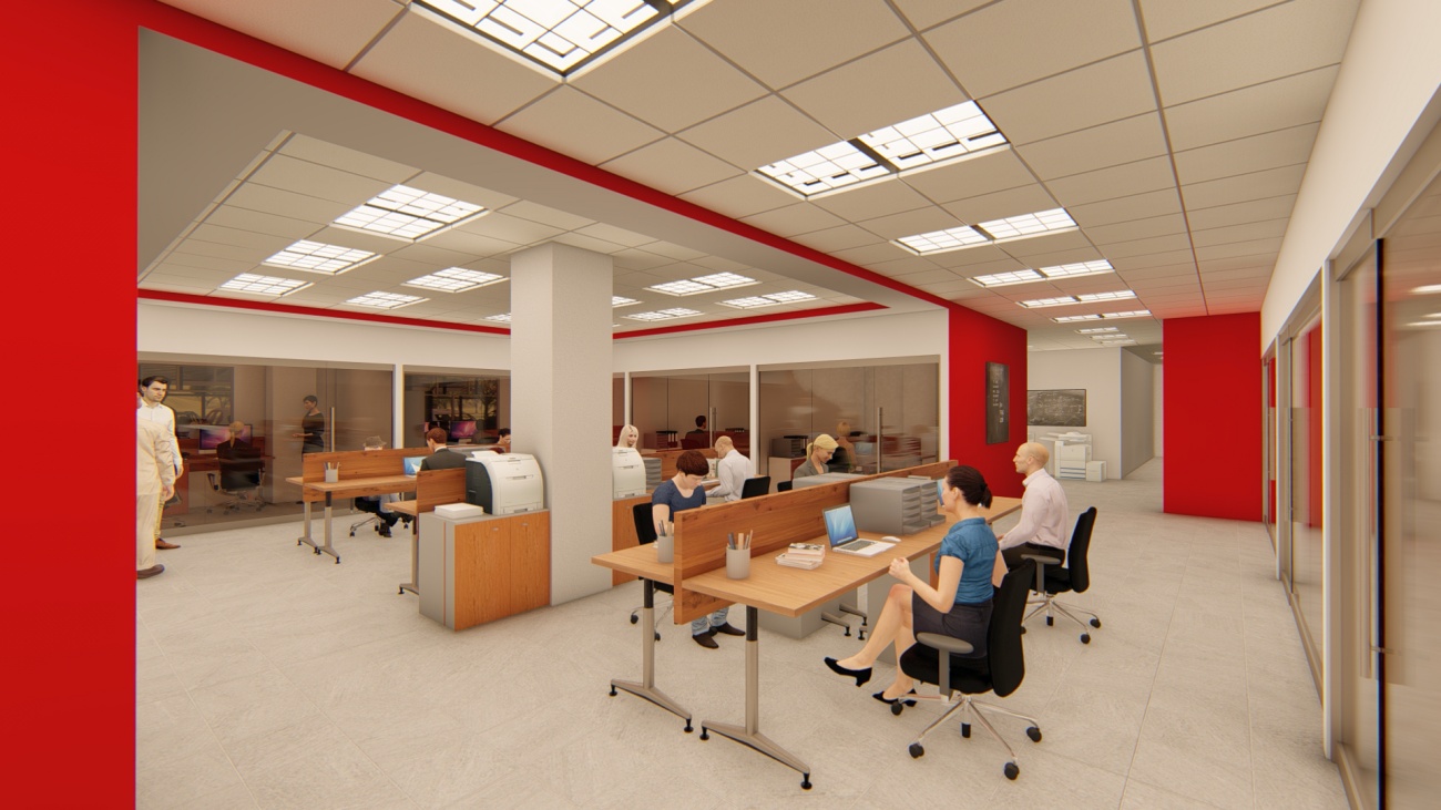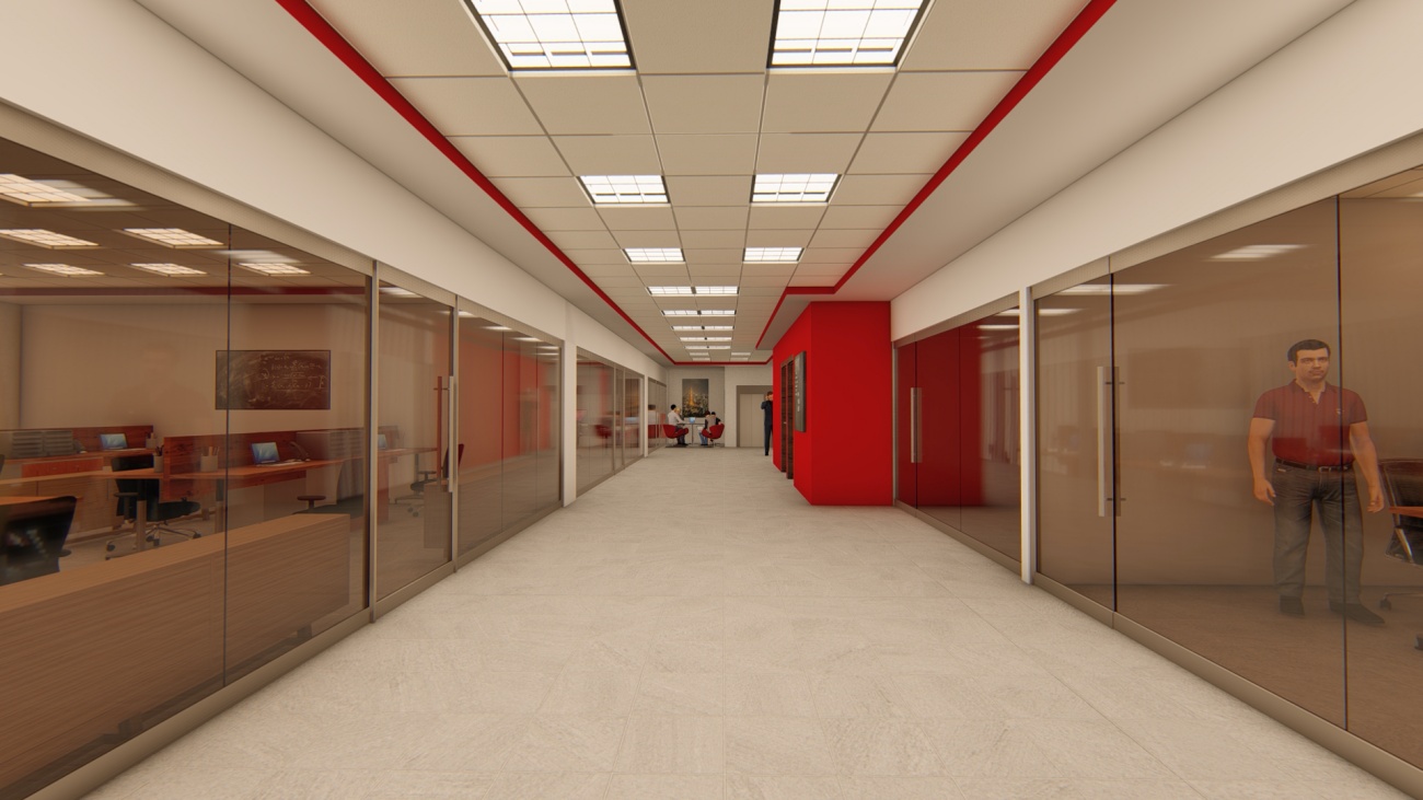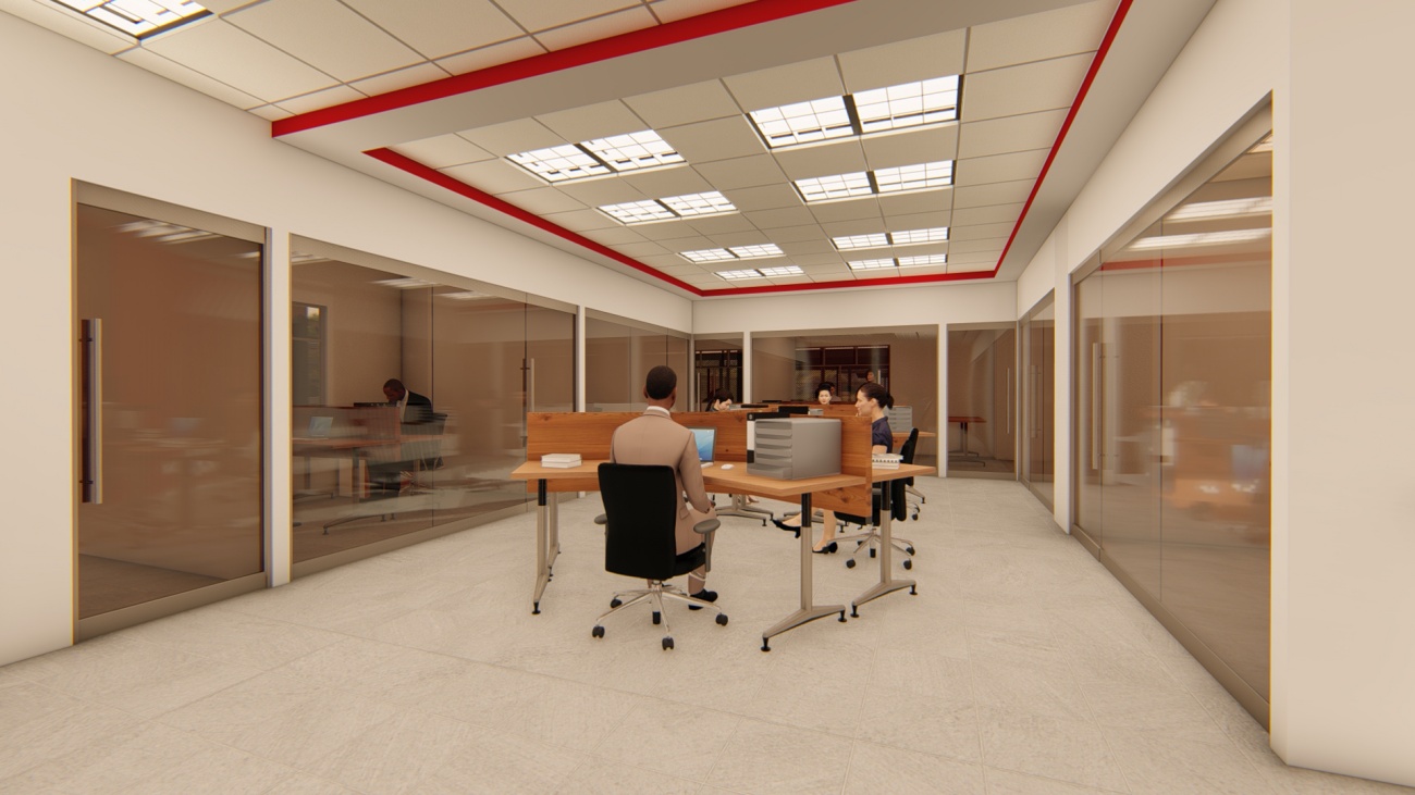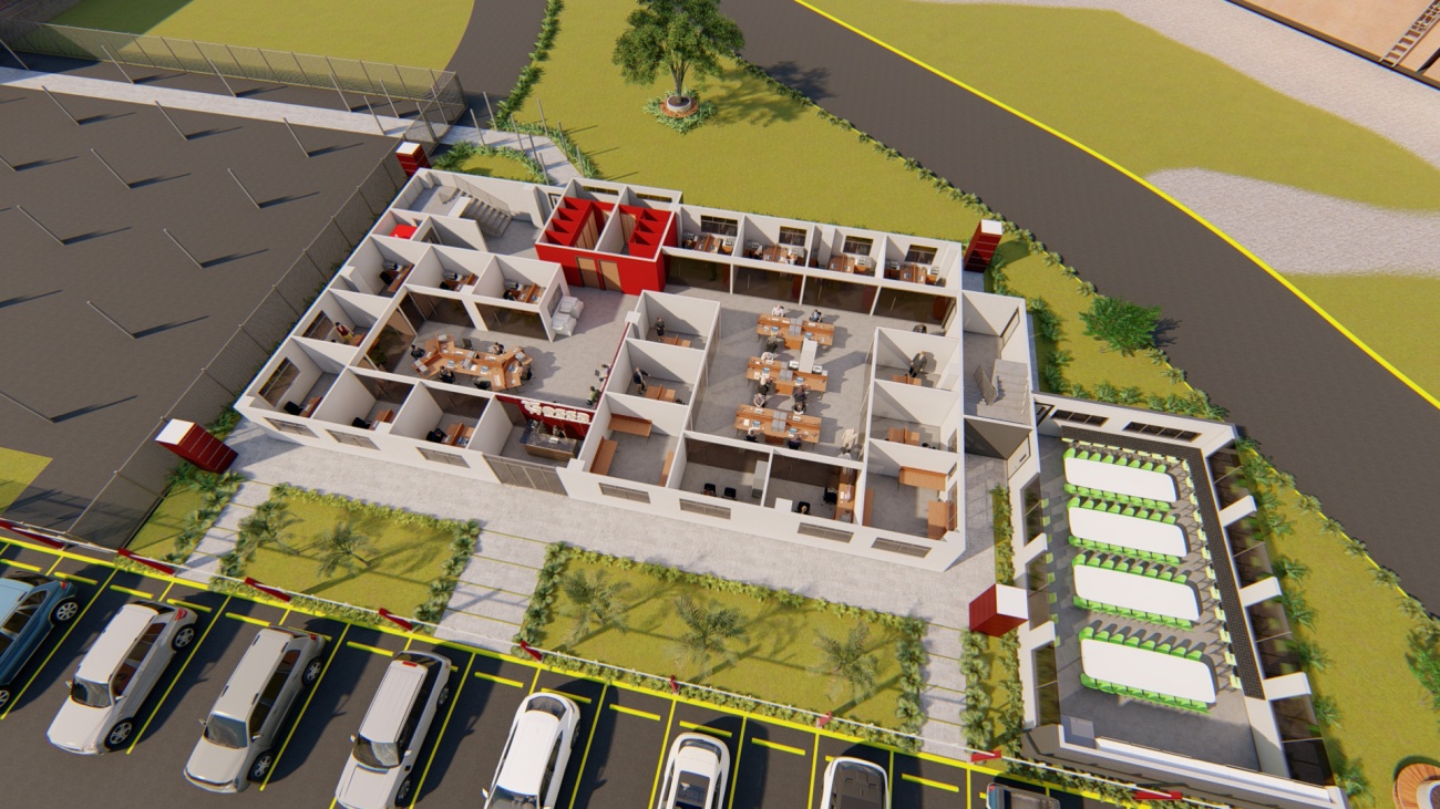 Edificio de oficinas para 120 personas distribuido en 3 niveles con espacios como cubículos, oficinas grupales, oficinas separadas, centros de reuniones y 1 sala magna para conferencias junto con 2 oficinas de gerencia y batería de baños en cada piso.