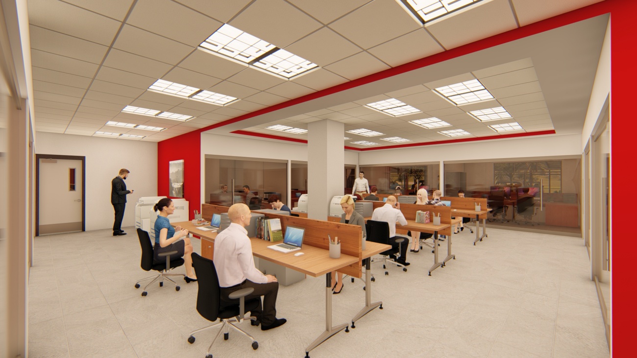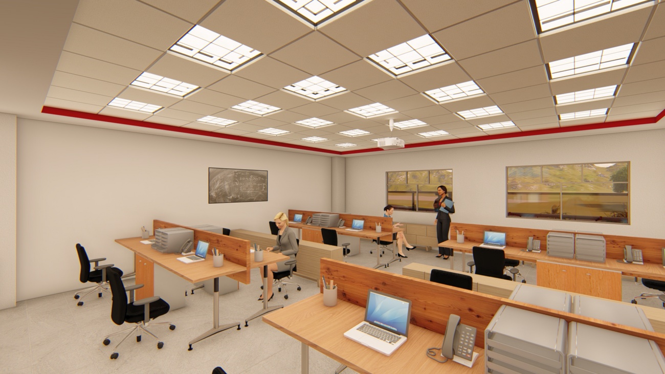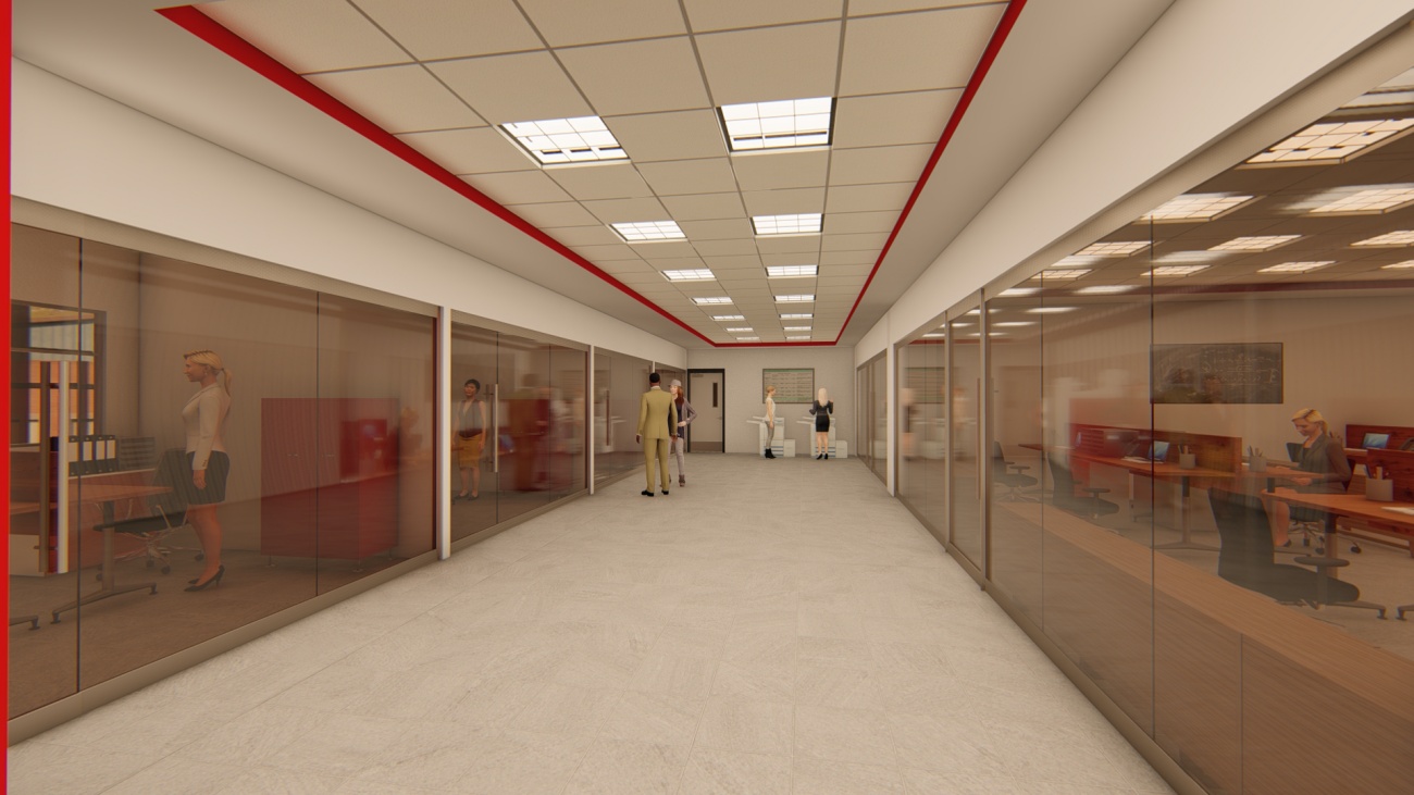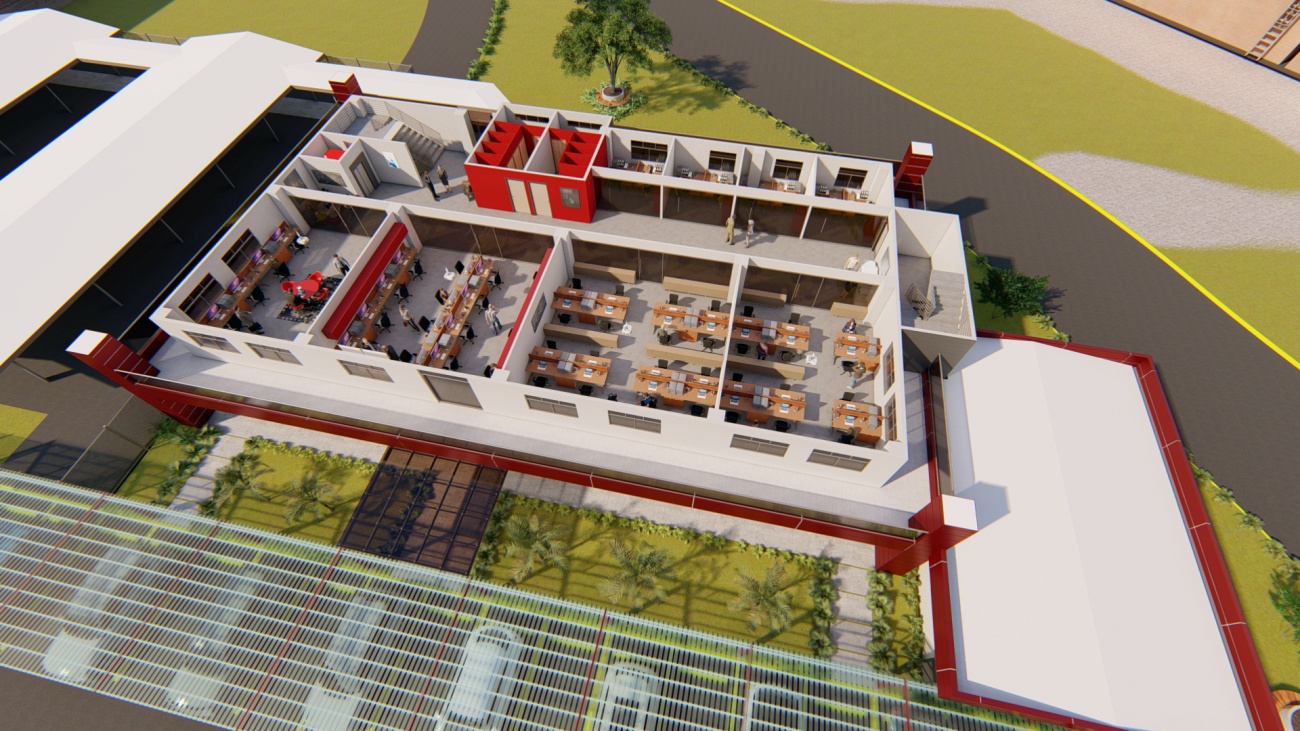 Edificio de oficinas para 120 personas distribuido en 3 niveles con espacios como cubículos, oficinas grupales, oficinas separadas, centros de reuniones y 1 sala magna para conferencias junto con 2 oficinas de gerencia y batería de baños en cada piso.