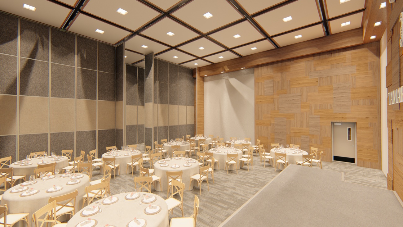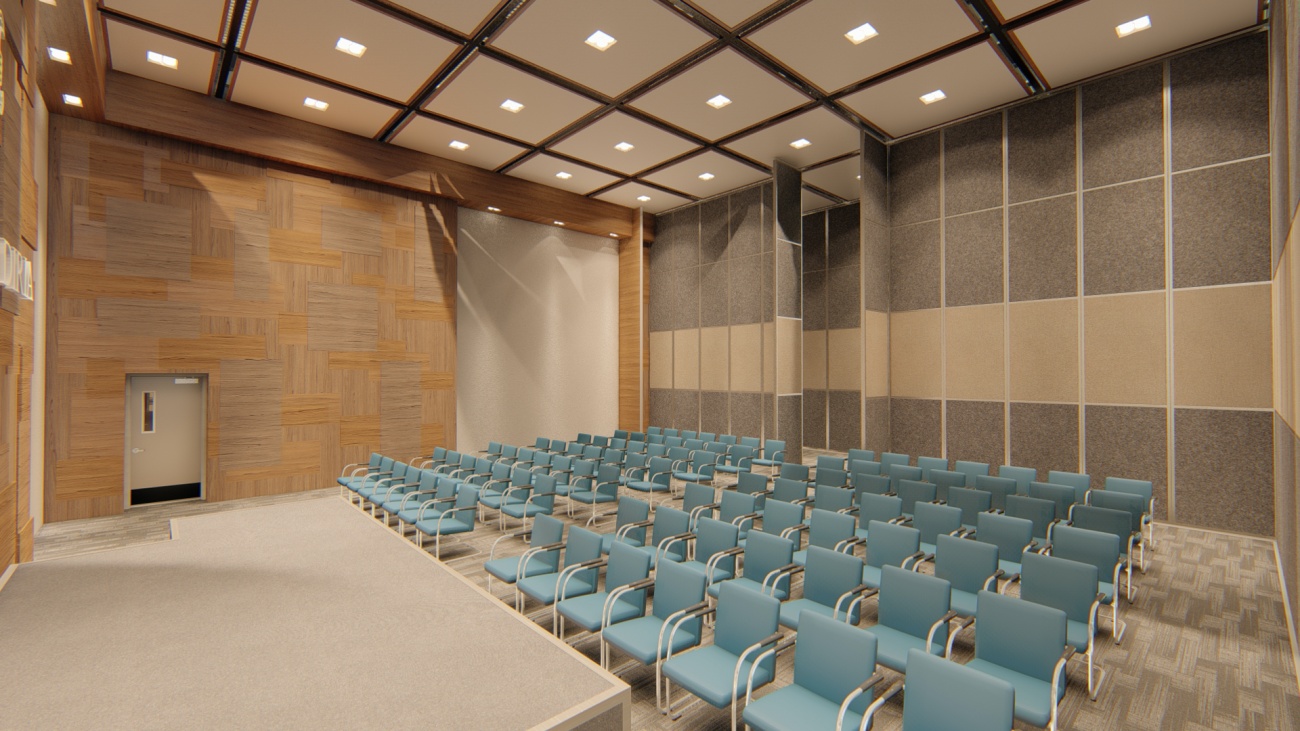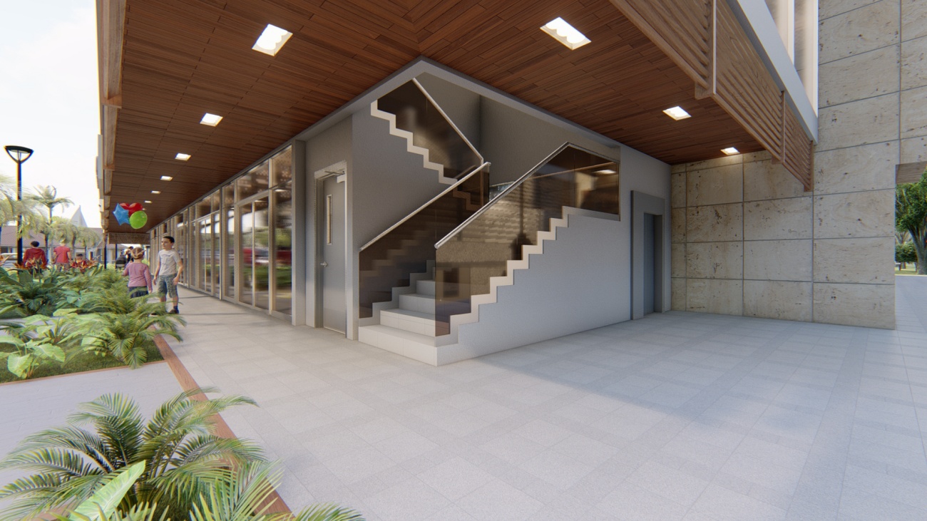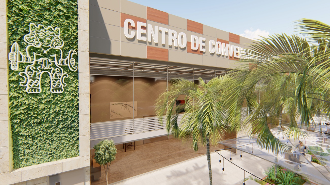 Centro de convenciones para 400 personas, divisibles en 4 salones de 100 personas cada uno, con su respectivas salida de emergencia, baterías de baños y cathering service para suplir actividades, en el sector sur con 4 locales comerciales y en la parte superior una centro oficinas.