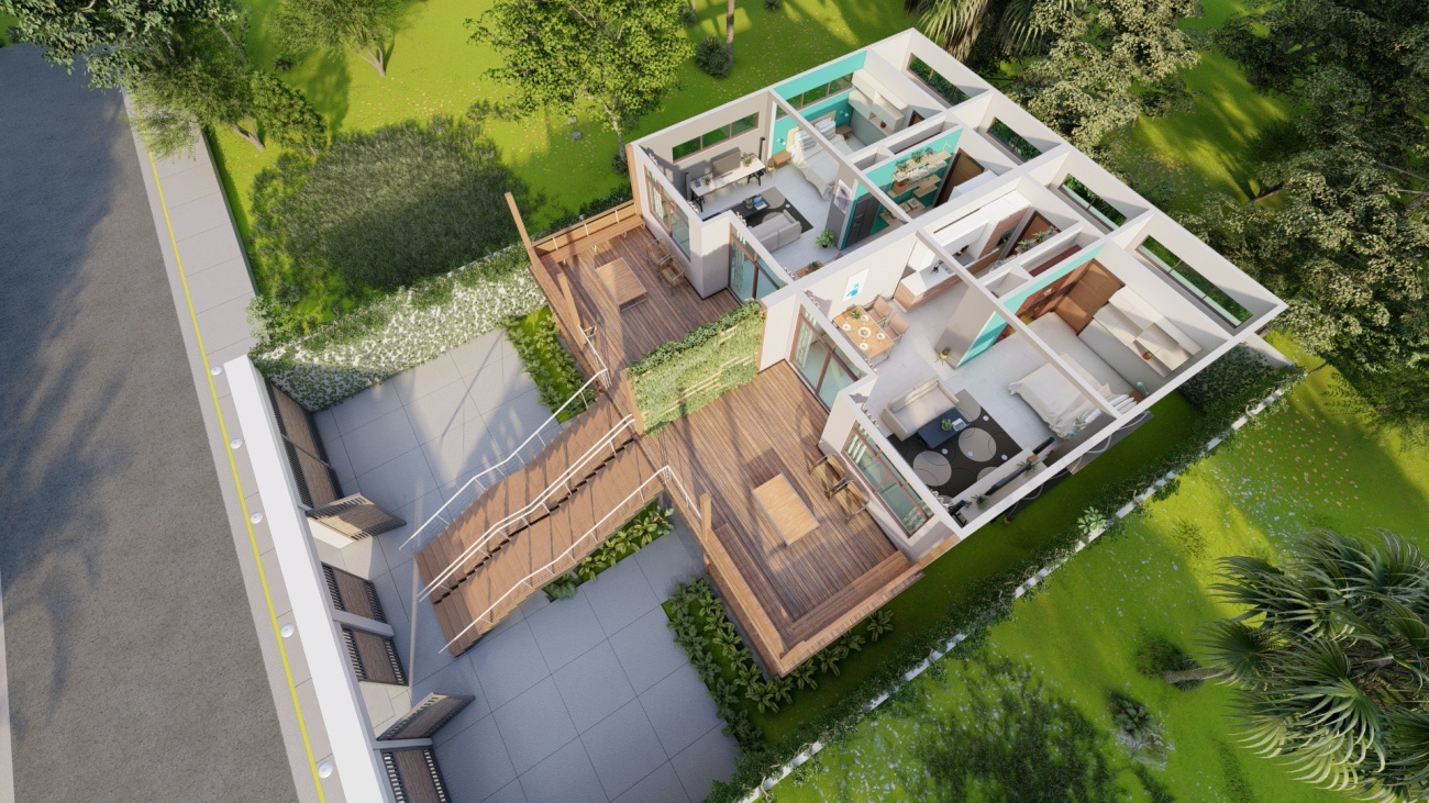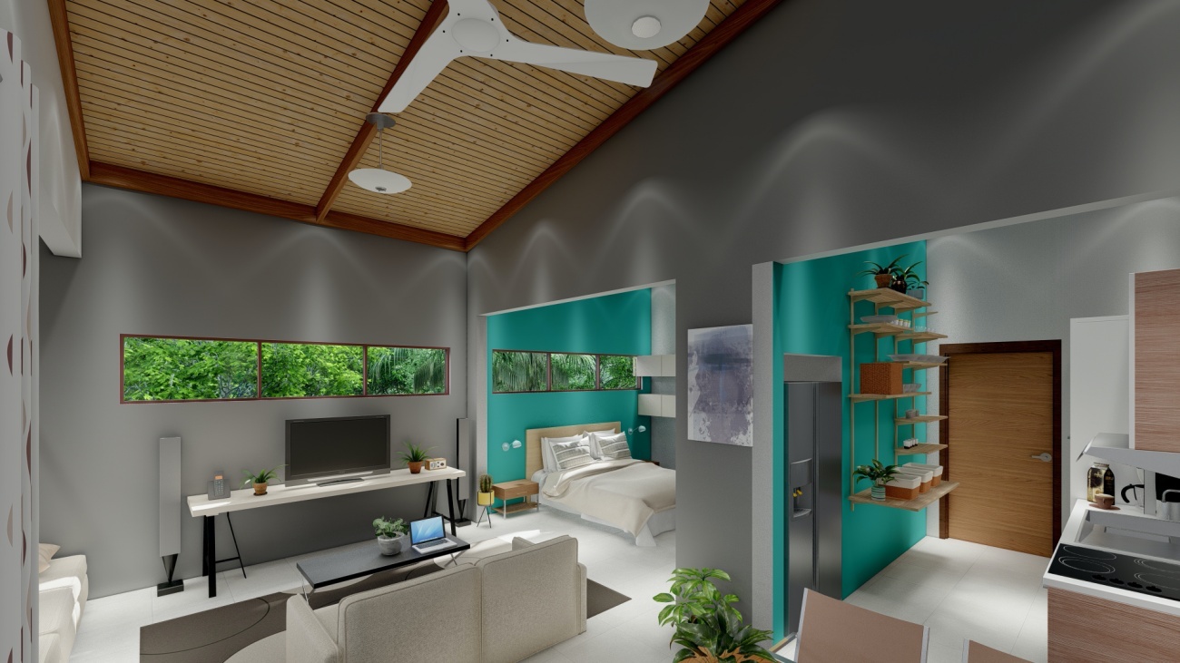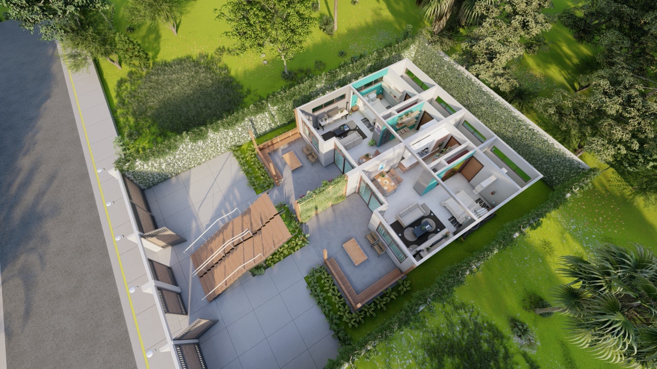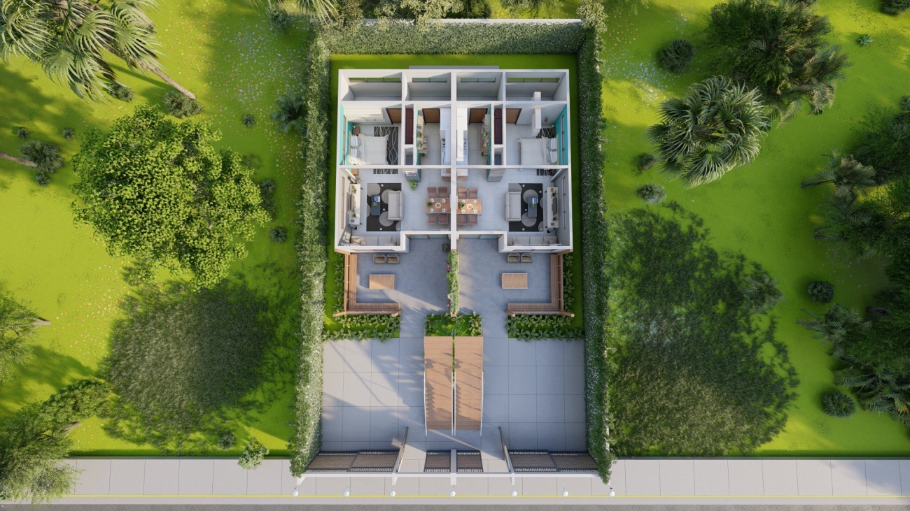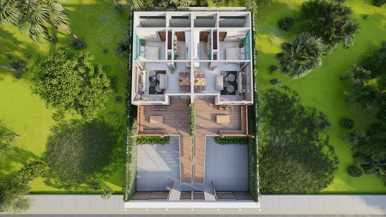 Apartamentos de 50 m2, con terrazas de 25 m2, con baño, cocina, pilas, sala y comedor.